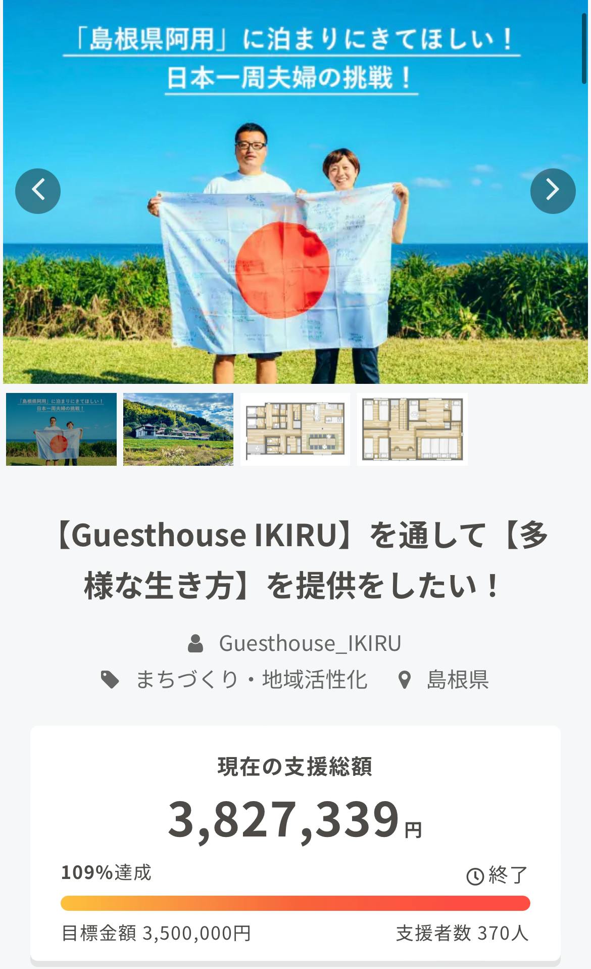 Guesthouse IKIRUのクラウドファンディング、目標金額の350万円を達成しました!!!
