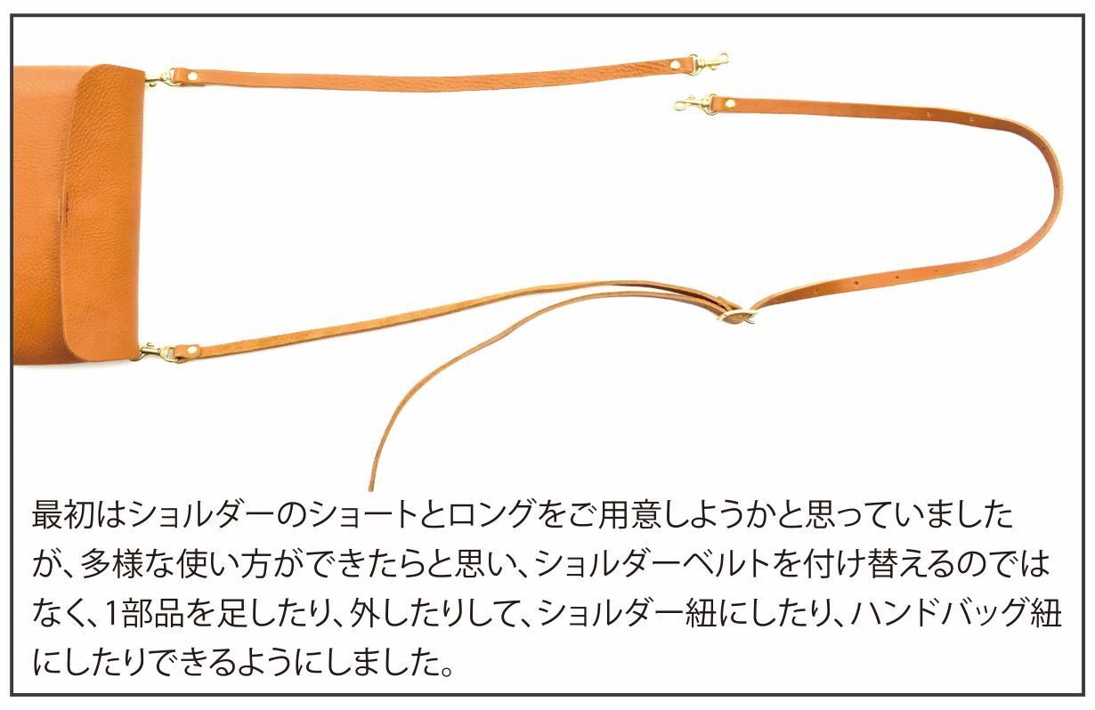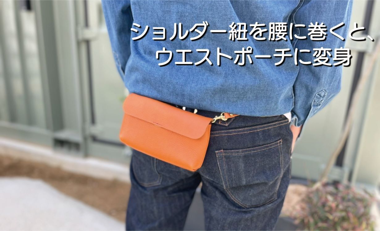 斜め掛けだけできるスマホポーチでは普通のスマホポーチですが、いろいろな持ち方ができればもっと便利でずっと使用できるスマホポーチになると思い、取り外し可能なショルダーシステムを採用!