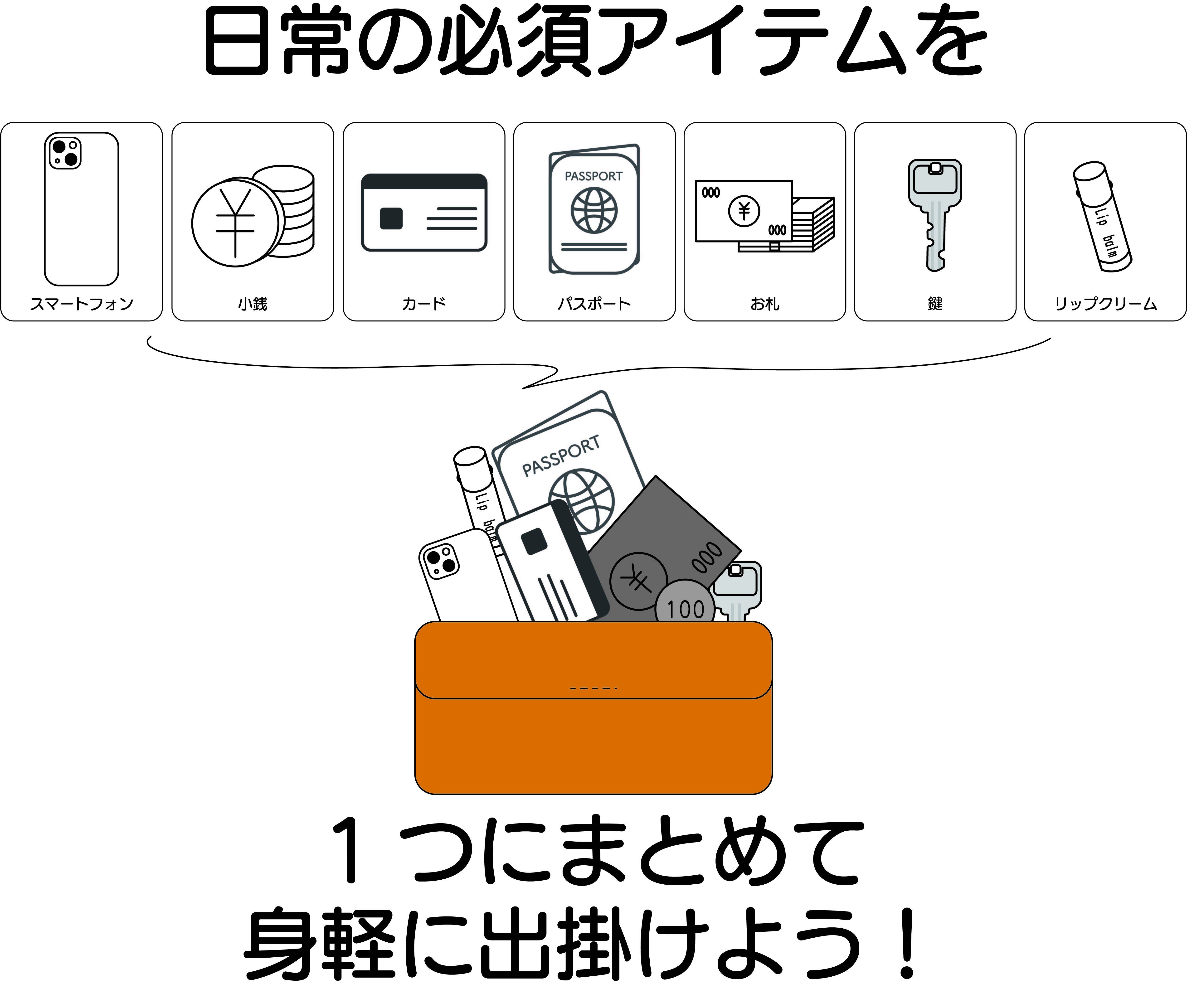 スマホ1つで多くのことを完結できるようになった現代人の荷物の少なさにマッチしたスマホポーチ。