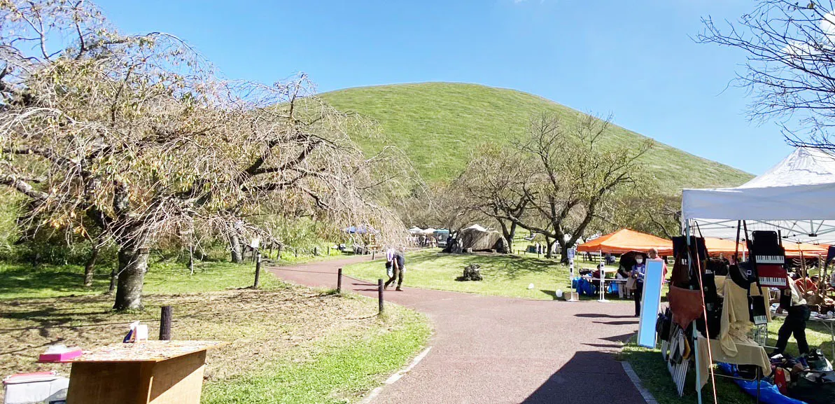 開催予定地の「さくらの里」は、大室山の麓にある自然豊かな場所です。大室山の年間利用者数は約97万人。さくらの里はその大室山から望める場所にあります。