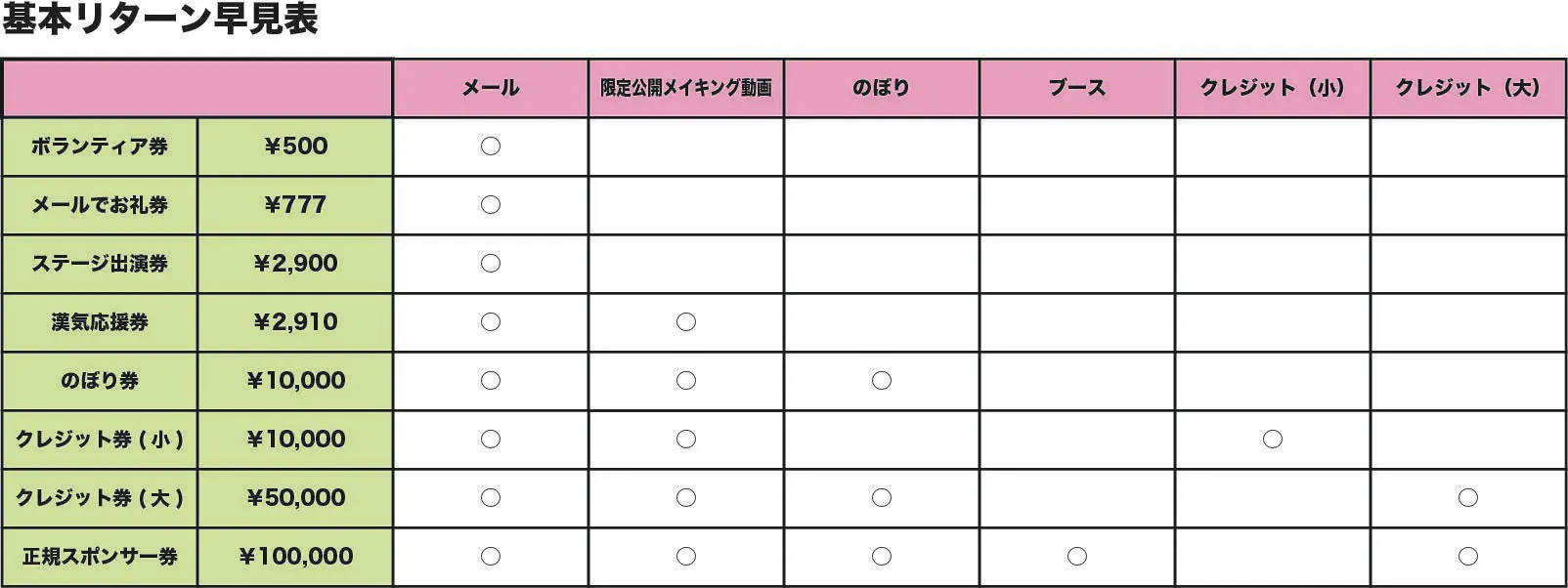 色々な形のリターンをご用意させて頂きました。