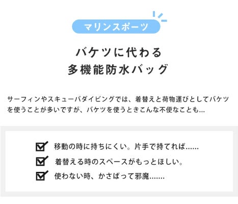 サーフィンやスキューバダイビングでは、着替えと荷物運びとしてバケツを使うことが多いですが、バケツを使う時こんな不便なことも…