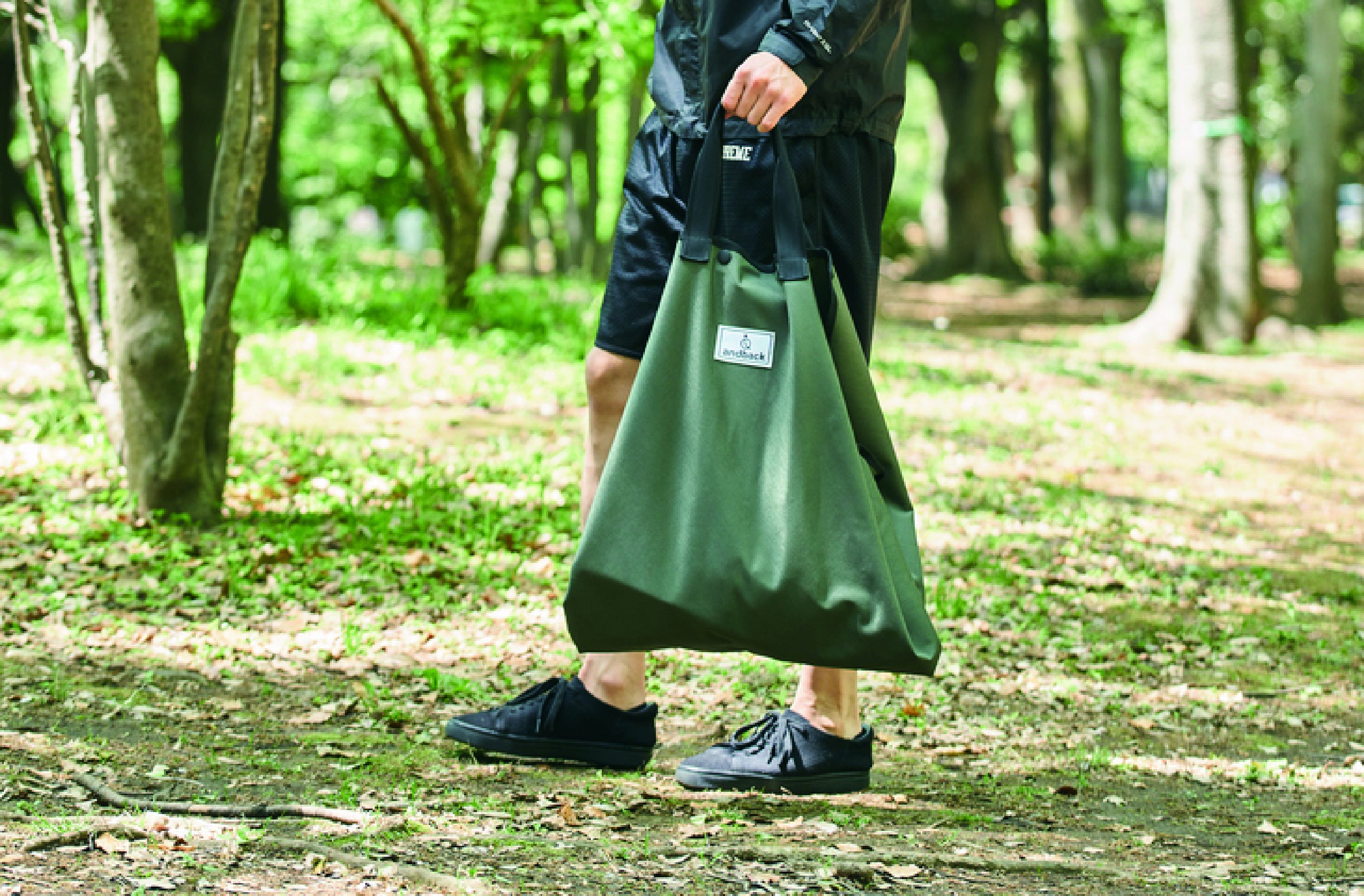 andbackは、バッグがシートになるので広げれば着替えが楽々。着替えた服を包めばそのままバッグになり持ち帰りも楽々です。