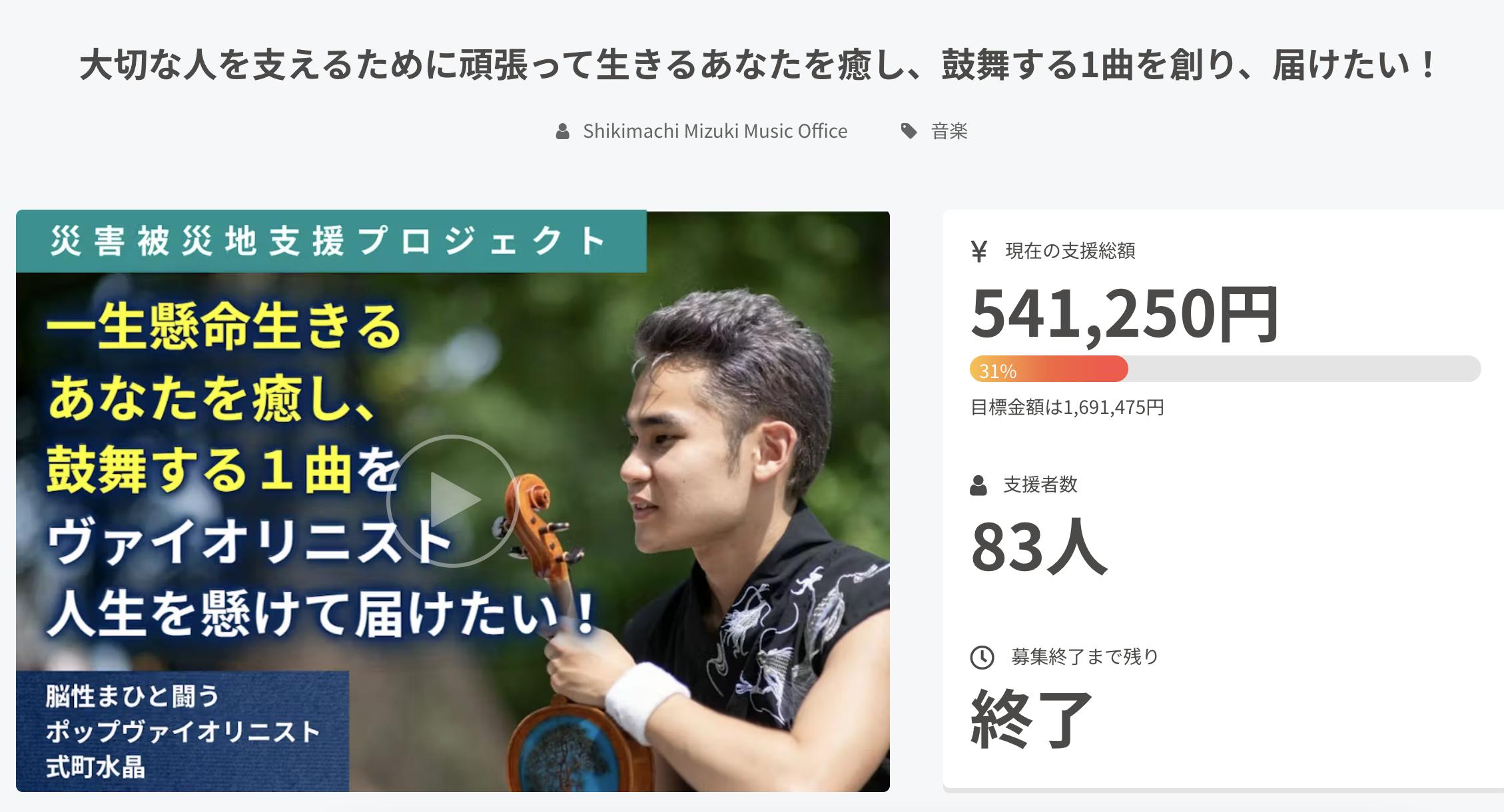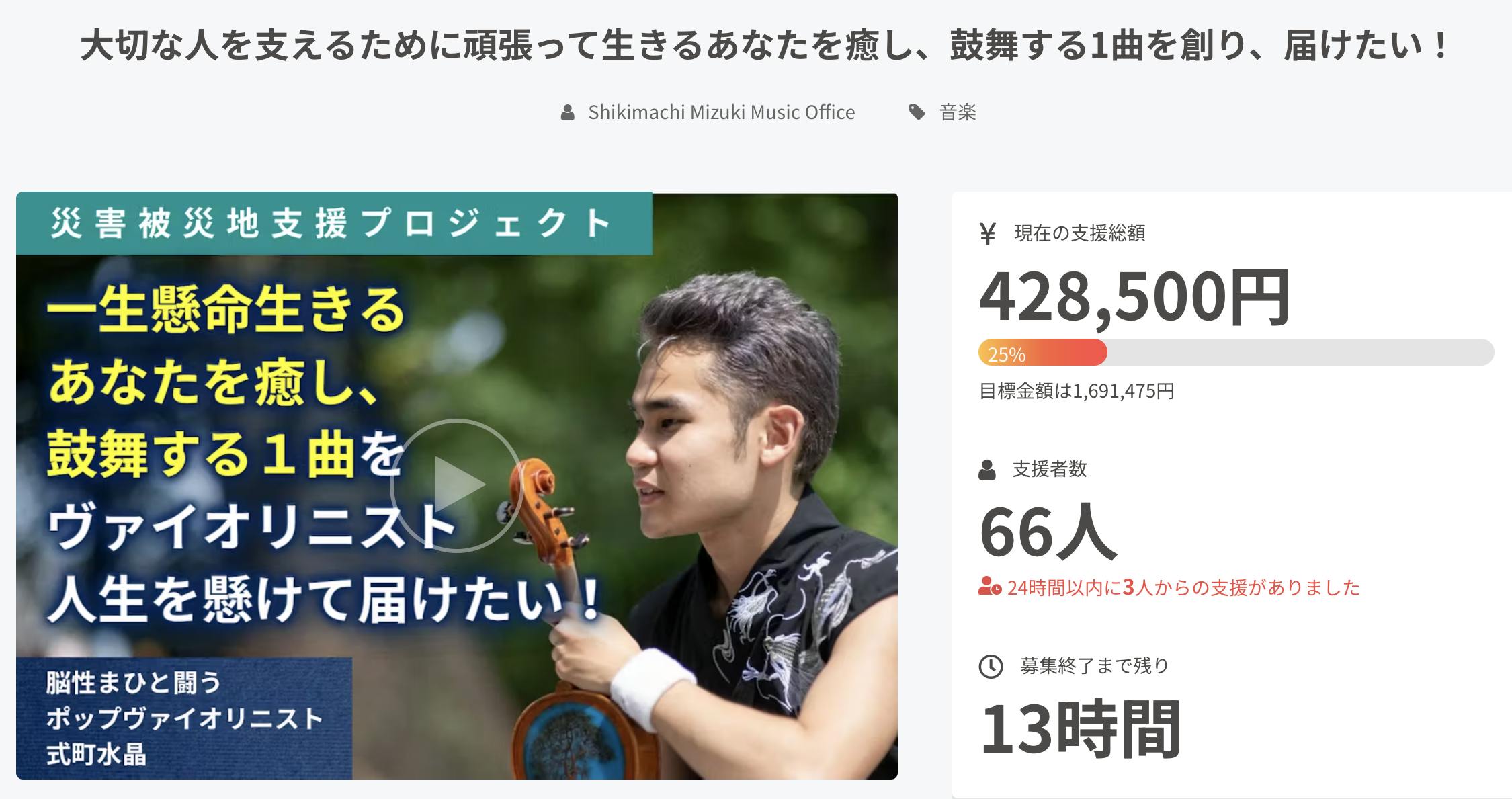 はじめまして!脳性まひと闘うポップヴァイオリニストの式町水晶(しきまちみずき)と申します。このたび、ヴァイオリニスト人生を懸けて、人々を癒し・鼓舞する1曲を生み出し、CDにして届けたいと思い、クラウドファンディングプロジェクトを立ち上げました!
