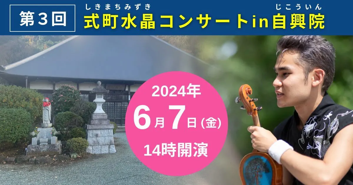 6月7日(金)に神奈川県秦野市の自興院(じこういん)にて、第3回式町水晶コンサートを行わせていただきます。ご予定大丈夫であればぜひお越しください!「癒しと鼓舞」の演奏をお届けさせていただきます!