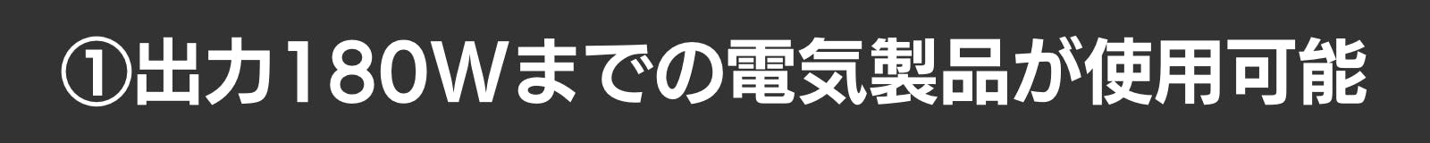 インバーターの電圧は110V、出力は最大180W。テレビや扇風機、電気毛布等の出力180Wまでの電気製品の使用が可能です。