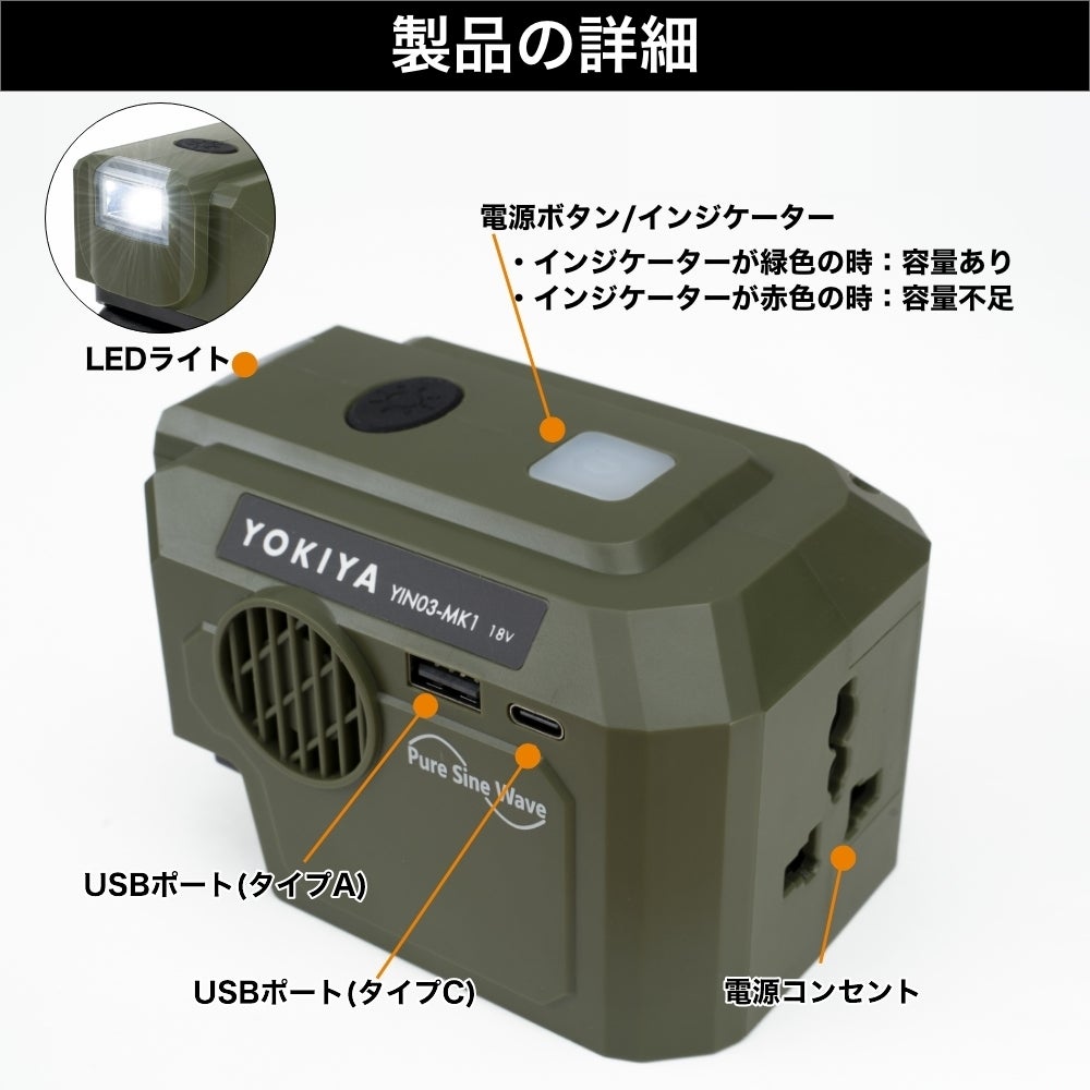 YOKIYA(良き屋) マキタ18V専用 正弦波インバーター