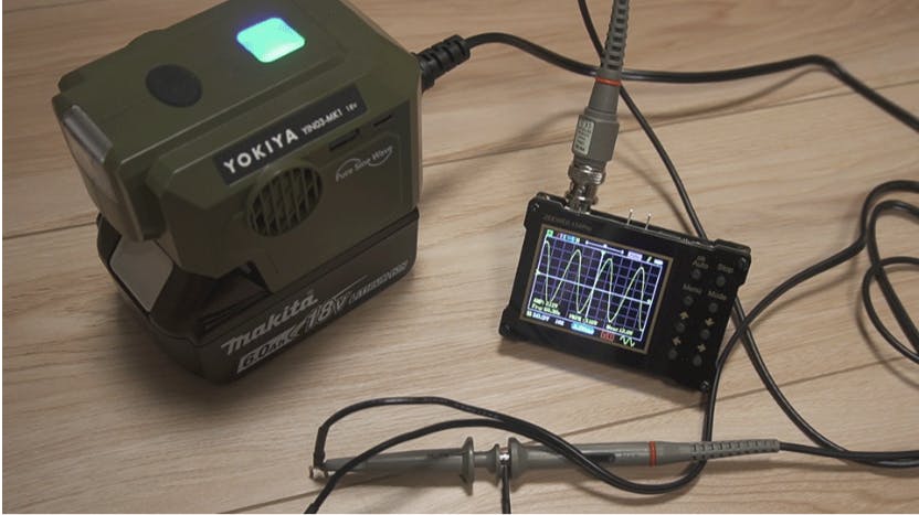 波形テストの様子です。正弦波である事が確認出来ます。