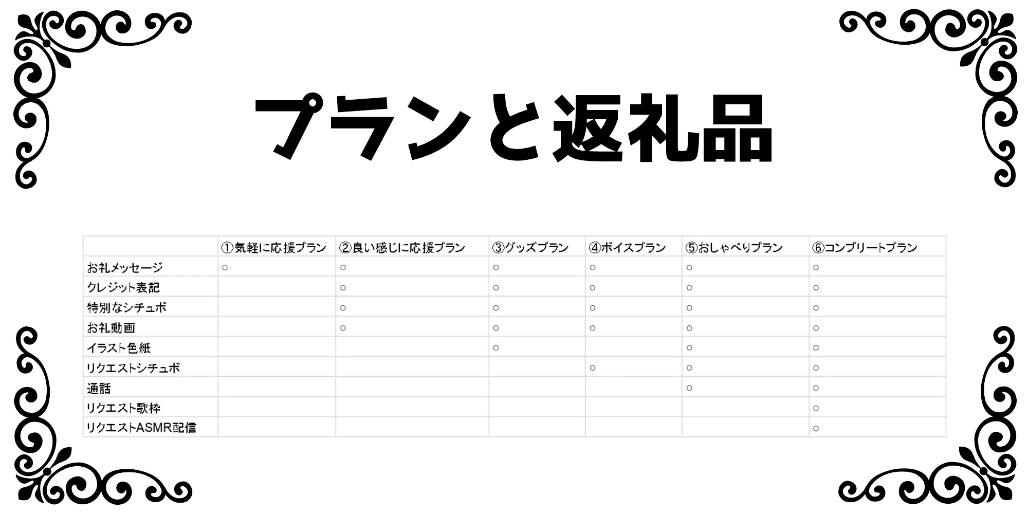 ※リターン品のなかに不要なものがある場合(例:⑤笹百合ねねとおしゃべりプランで支援したいけどグッズはいらない)ご連絡いただければご対応可能です