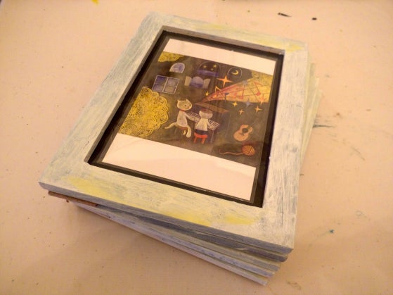 ■ 猫や月が描かれた作品のポストカード3枚と木製額に独自のペイントを施したフレームのセット(2,000円)