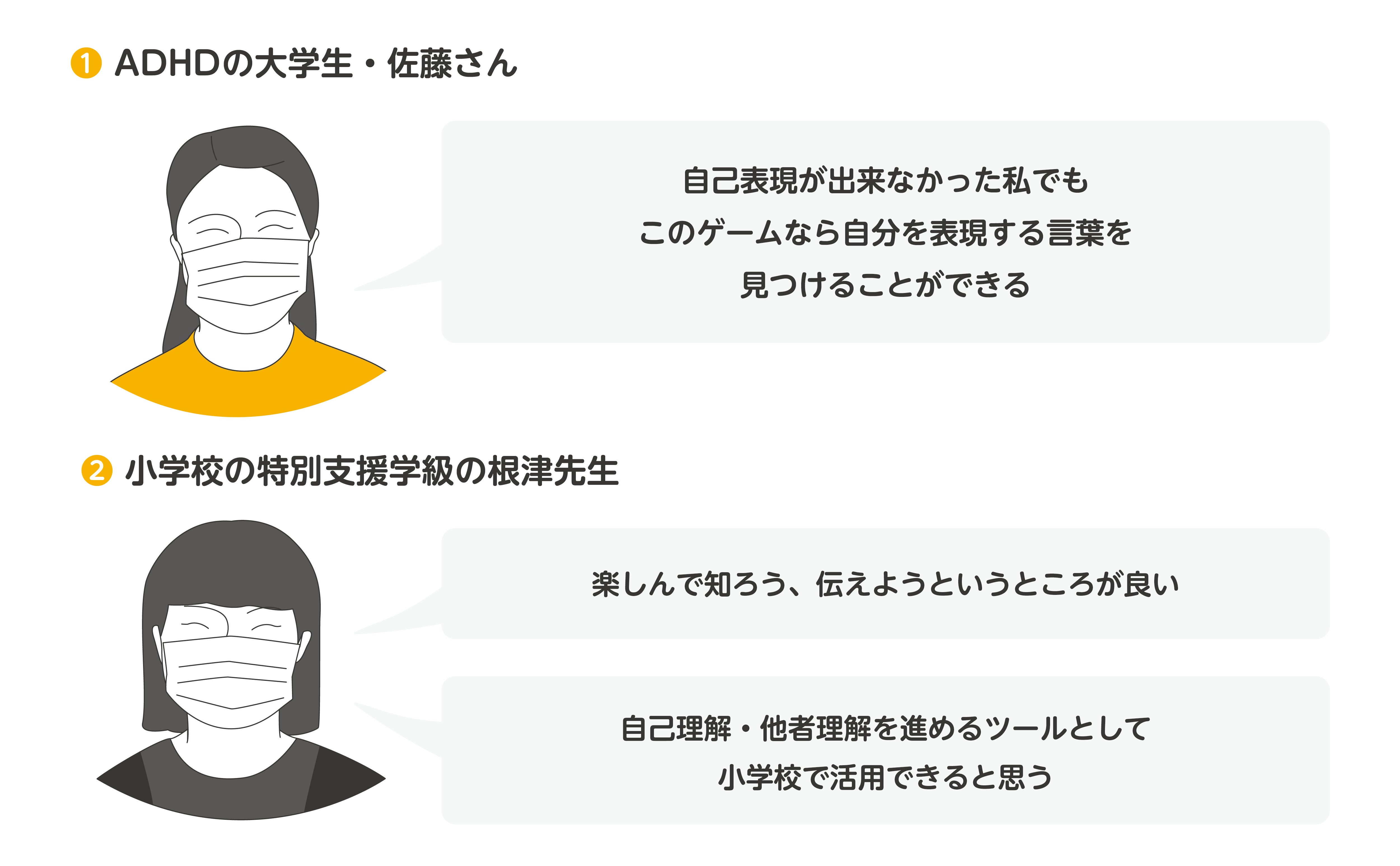 ②普段は伝えにくい自分のことをゲームを通して友達に話すことができる、