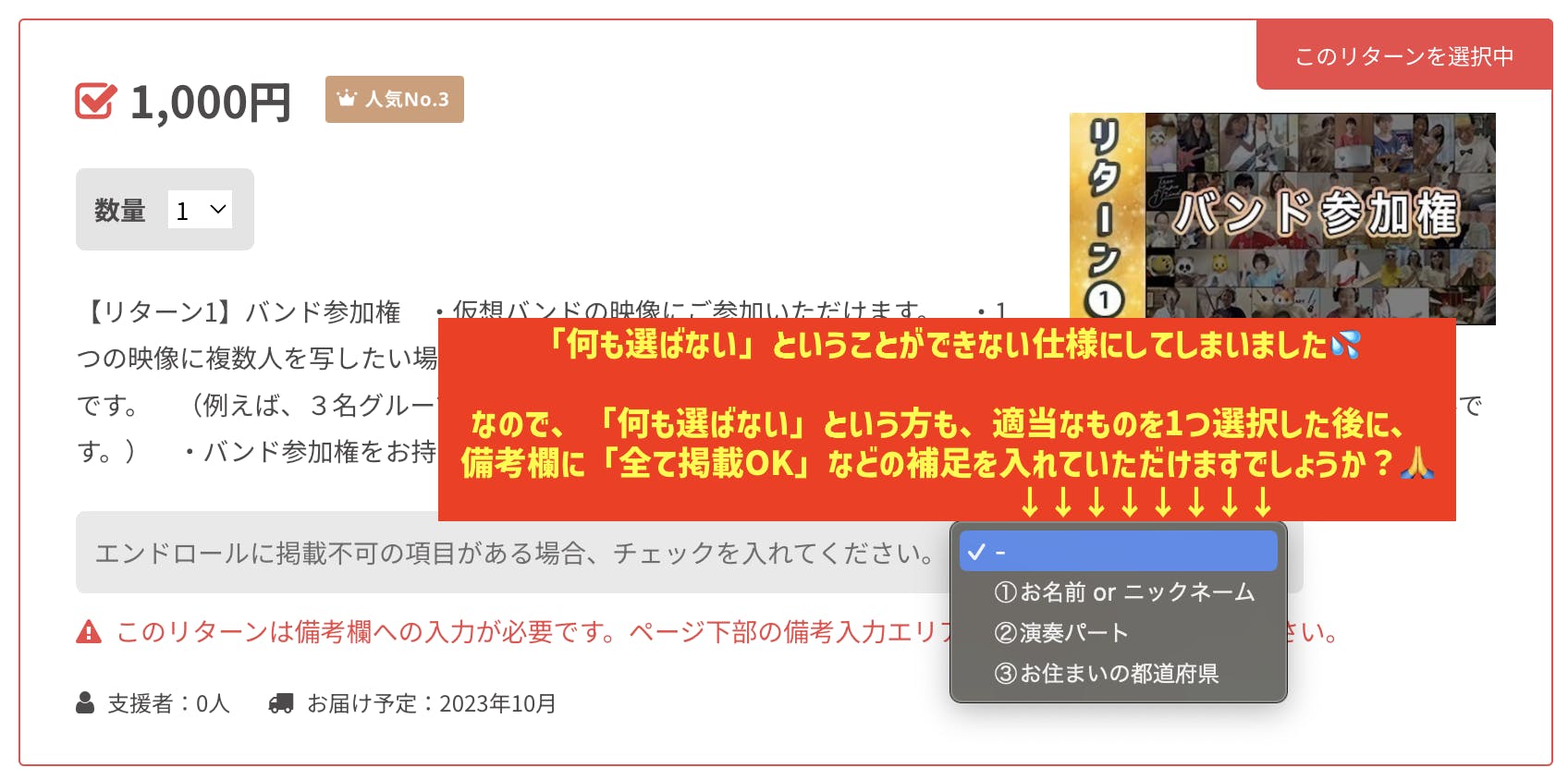 「エンドロールに掲載不可の項目がある場合は、チェックを入れてください。」