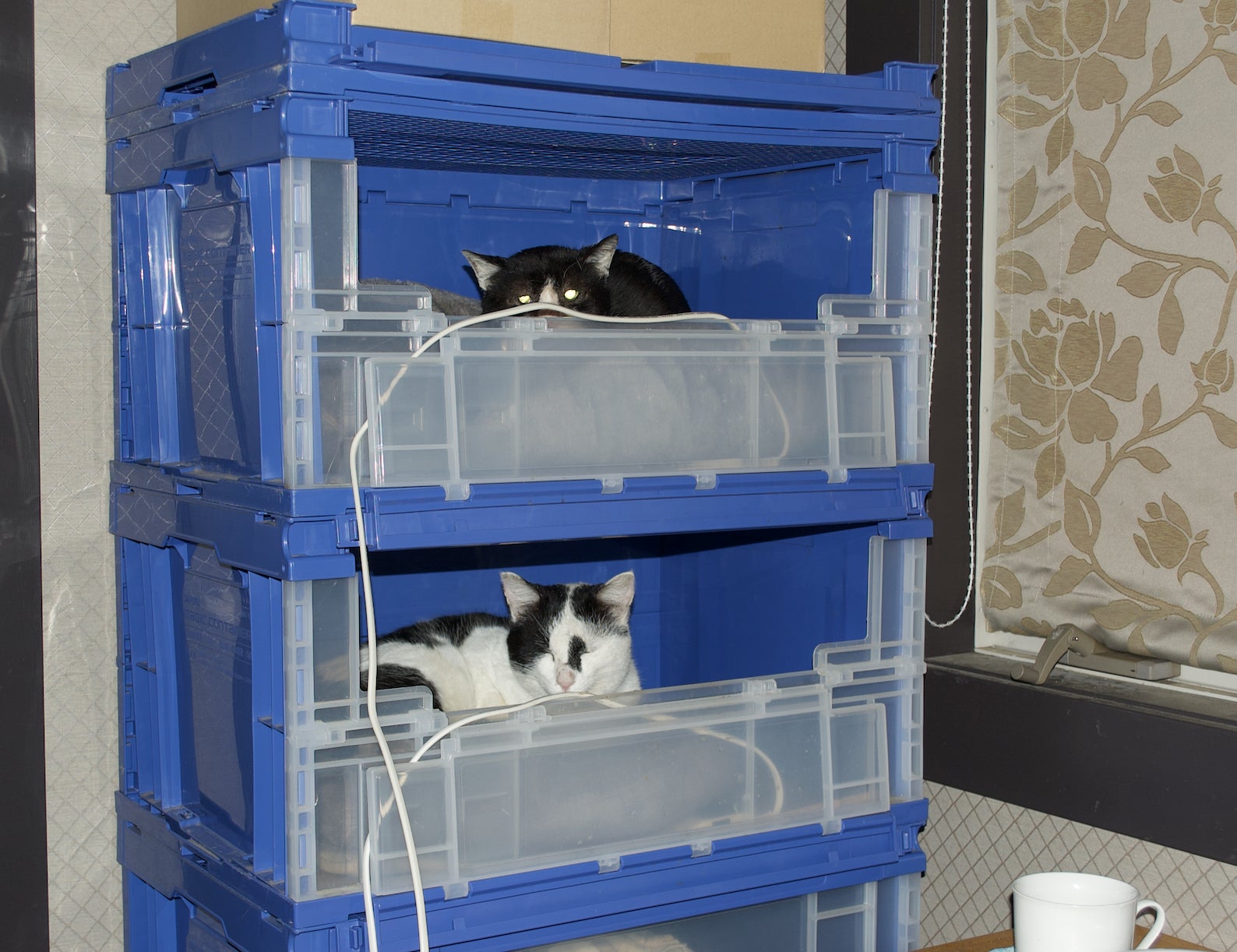 2023/10/24 09:43野良ちゃんがいつでも入って来れるように、自宅のひと部屋を解放しています。電気マットは必需品ですが、このマットでどれぐらい暖かいのか疑問です。いま、部屋に入ってくる野良ちゃんは、シロちゃんとシマちゃんの2匹です。猫は高い場所を好むので、できるだけ高い場所に、。、あと、2箇所ほど、電気マットと毛布の寝床を作ります。 もっと見る