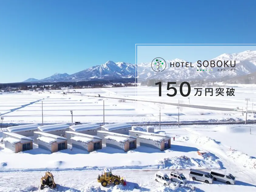 1/13より始まったHOTEL SOBOKUのクラウドファンディングが皆様のおかげで、目標金額の50%にあたる150万円を突破しました!