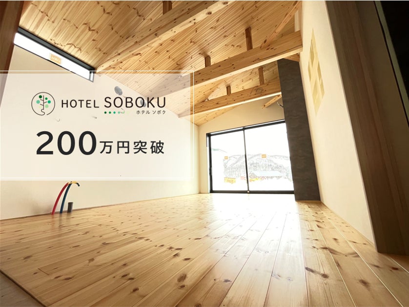 1/13より始まったHOTEL SOBOKUのクラウドファンディングが皆様のおかげで、目標金額の3分の2にあたる200万円を突破しました!