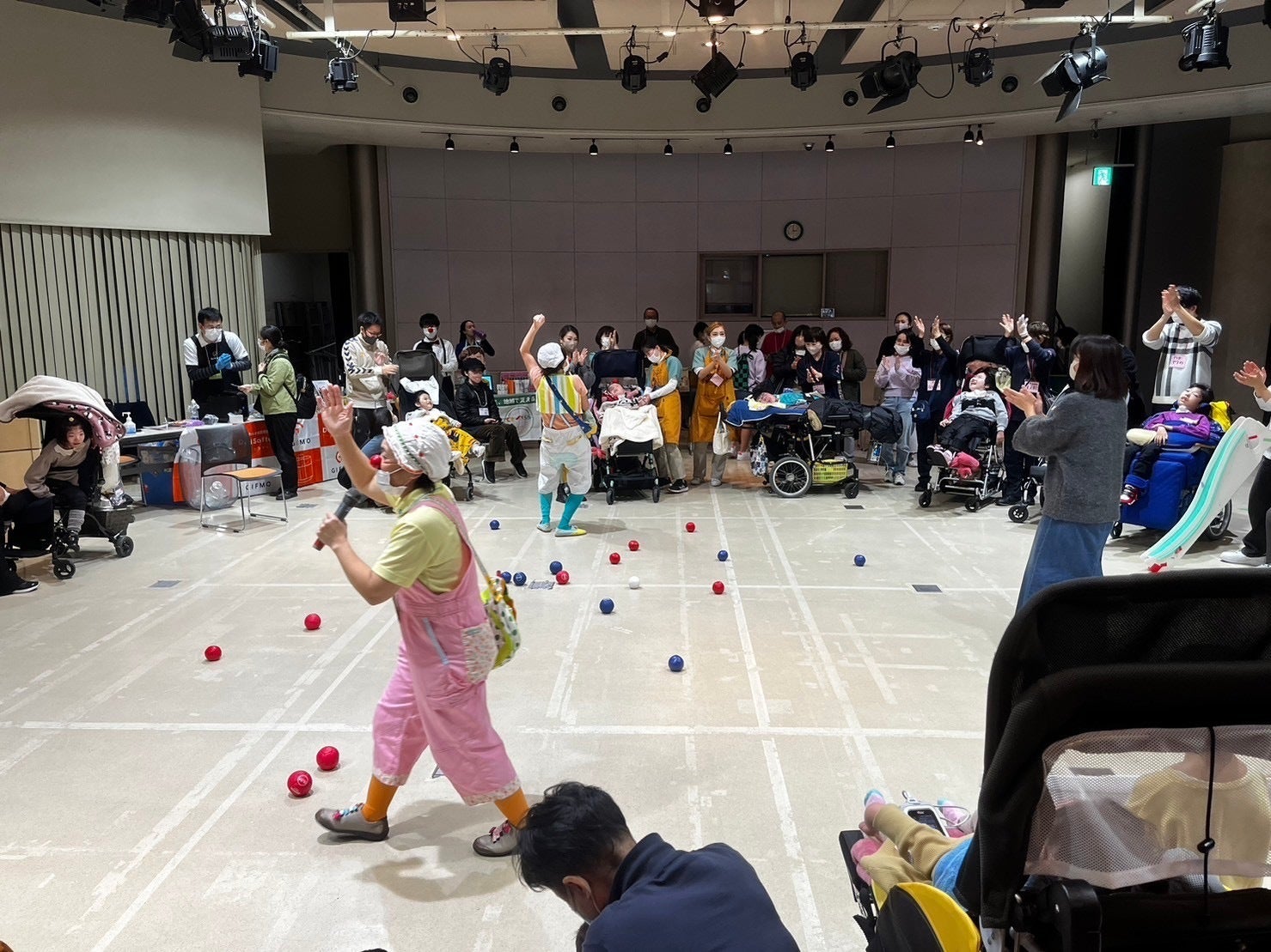 赤鼻がトレードマークのクリニクラウンは、入院生活を送っている子どもの病室を定期的に訪問し、遊びやコミュニケーションを通して子どもたちの成長をサポートする団体で、入院中にお世話になった認定NPO法人日本クリニクラウン協会様に当日参加する重度心身障害児者と医療ケア児者がクラウンに会ってみんなで笑顔になるイベント
