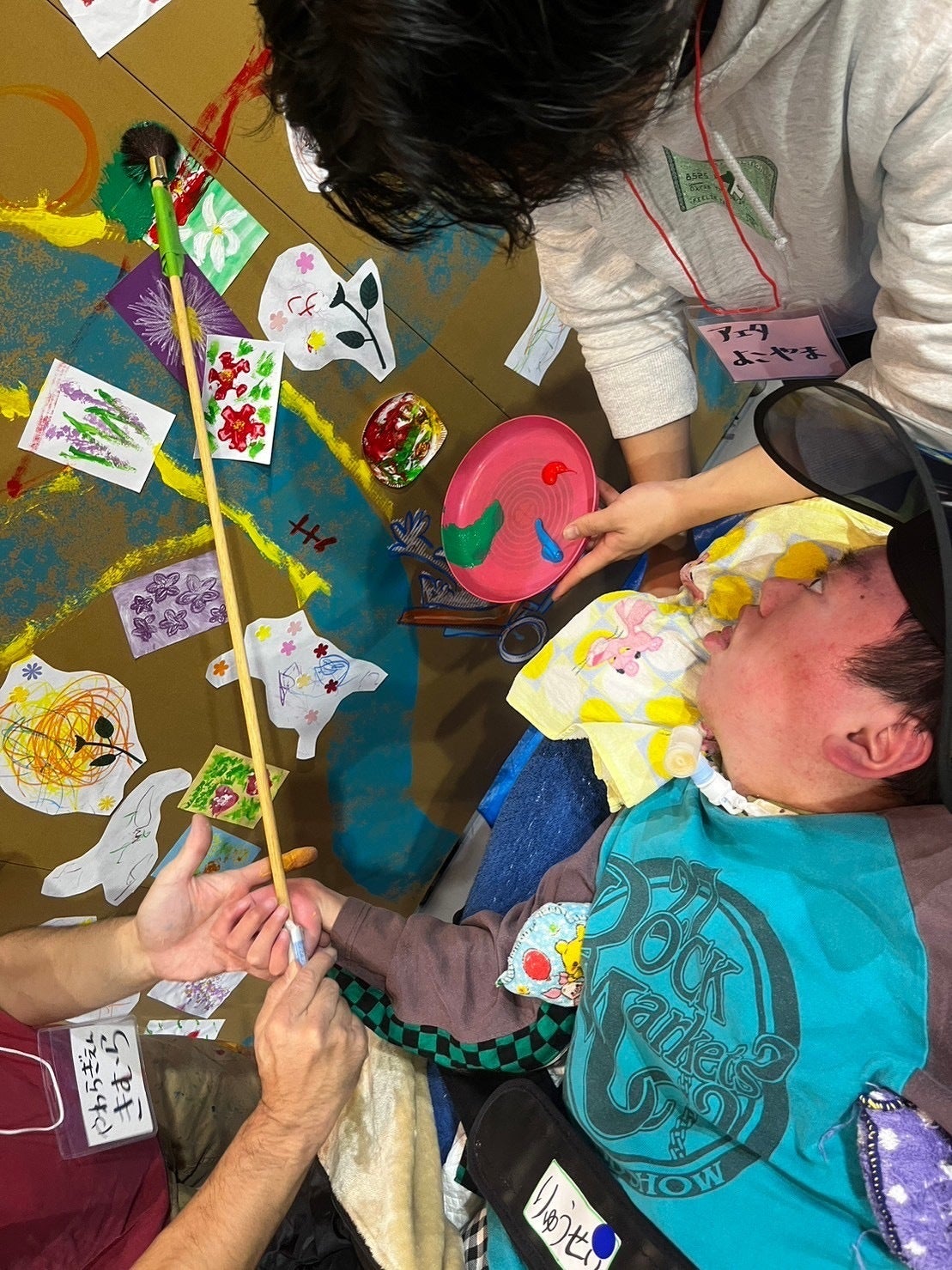 2023年11月18日㈯に開催しました「Tapspinngフェスティバル」の活動報告です。障がいがあっても一緒に絵を描けるように工夫された筆で支援者と色を塗りました。