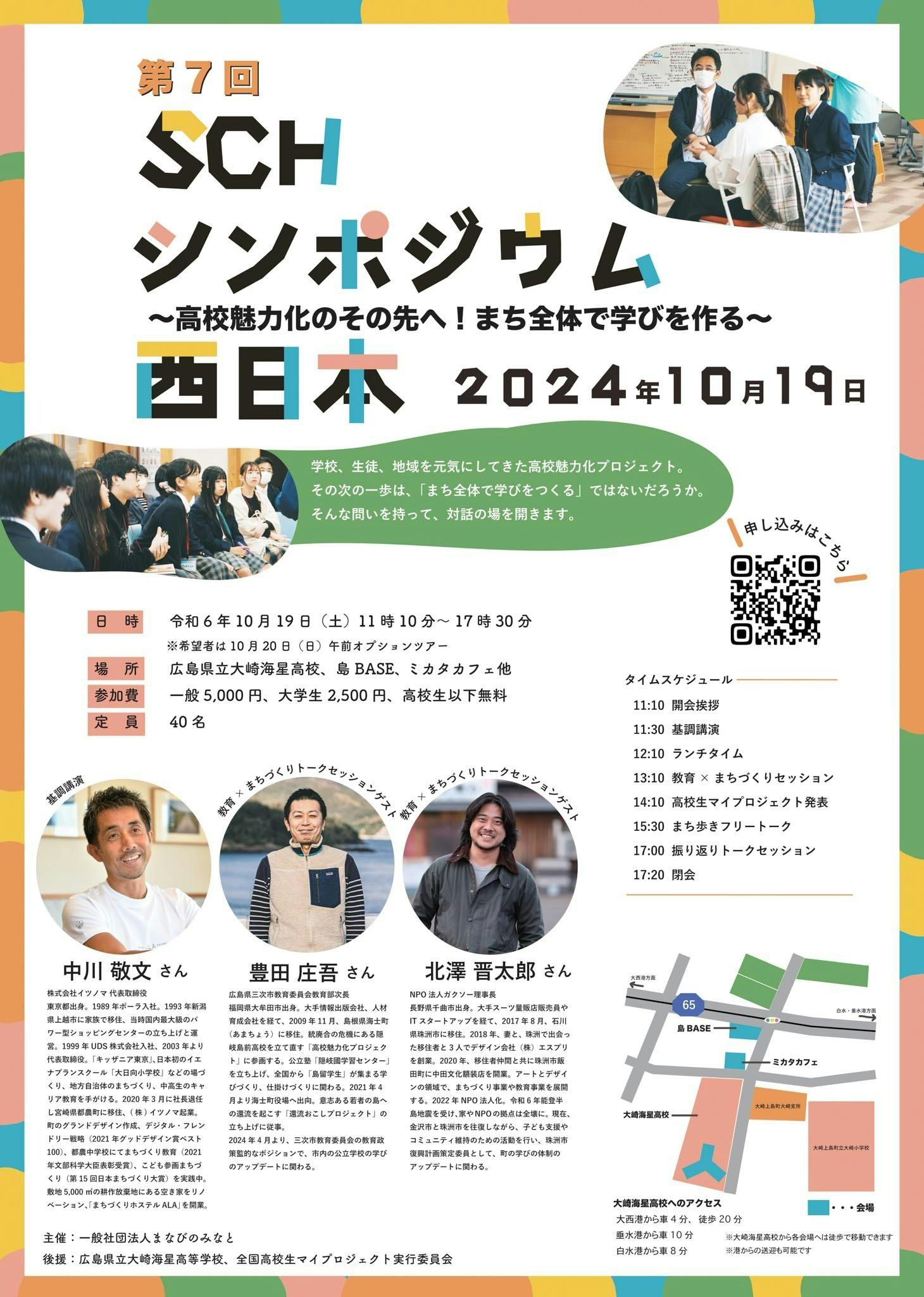 そこで、想いを持つ全国の地域×教育の実践者の皆様や教育者の皆様に応援していただき、今年のSCHシンポジウム西日本を共に創っていきたいと考えております!