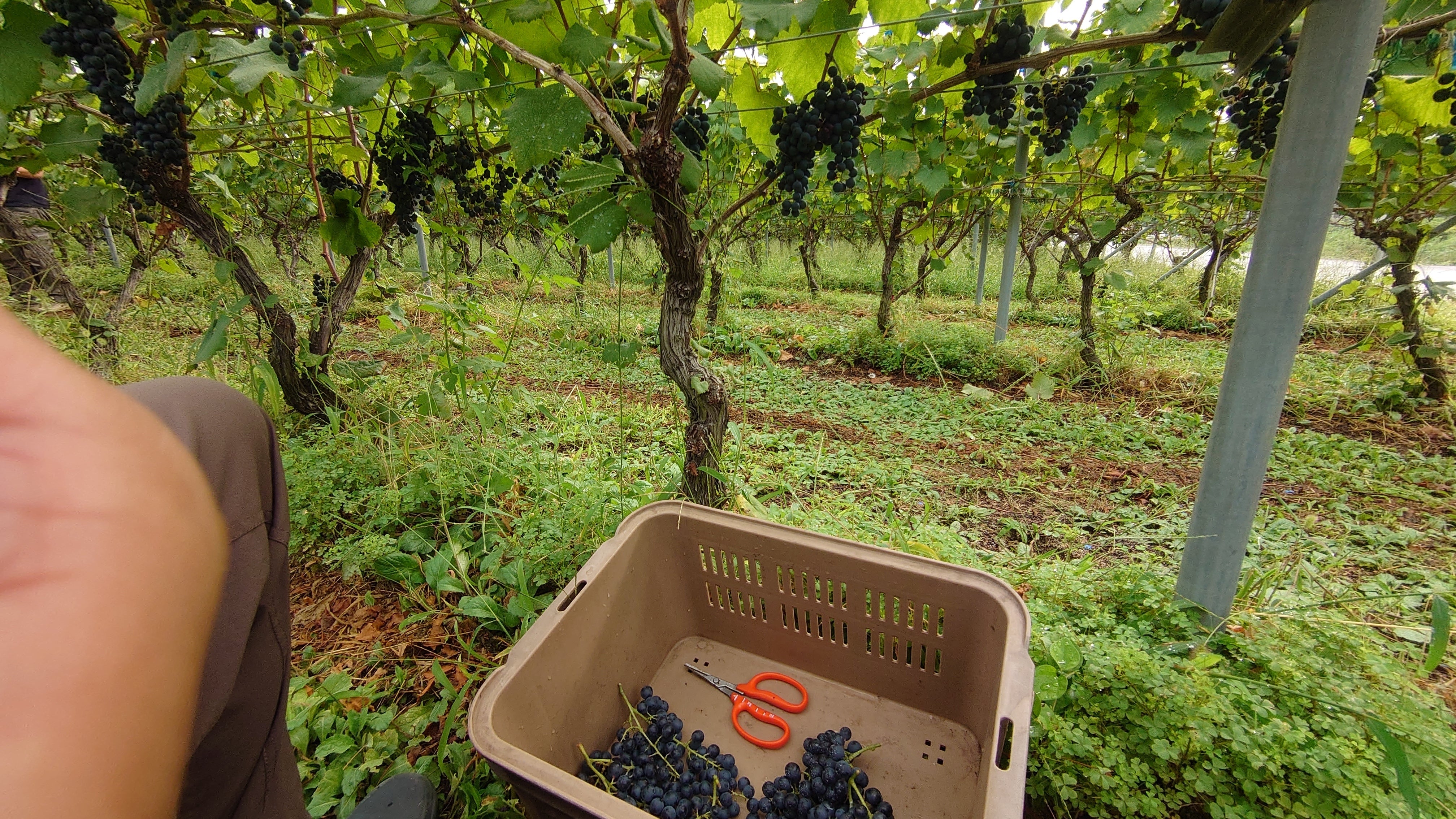 勝沼にてワイン用のプチ・ヴェルドの収穫