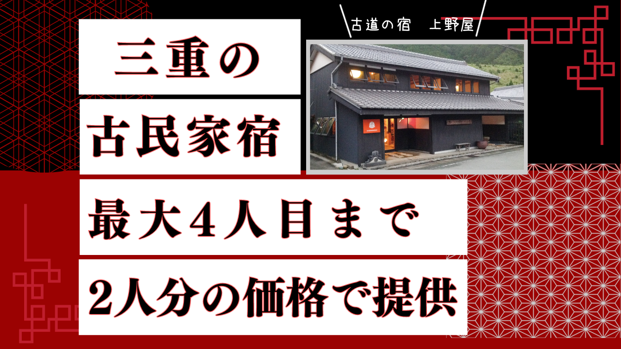 実家経営の宿「古道の宿 上野屋」祭だよ4人目まで2人分の価格で提供券