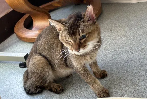 - あまり人馴れしていない子なので、苦痛だけとります。ご飯は食べたがりますがうまく口をあいて食べられないので療養食をシリンジであげています。左目の神経が圧迫されて瞳孔が動かないせいか、よろつきますが仲間と楽しく過ごしています。