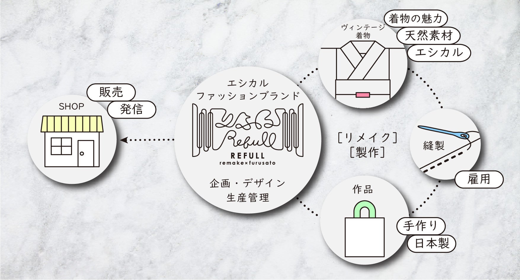 着物を手放した人も、新たな着物作品を手にした人も、みんなが明るく前向きな気持ちになれるように社会貢献したいと思いりふるが誕生しました。