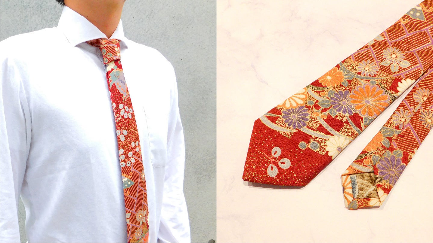 着物をリメイクして制作するネクタイです。