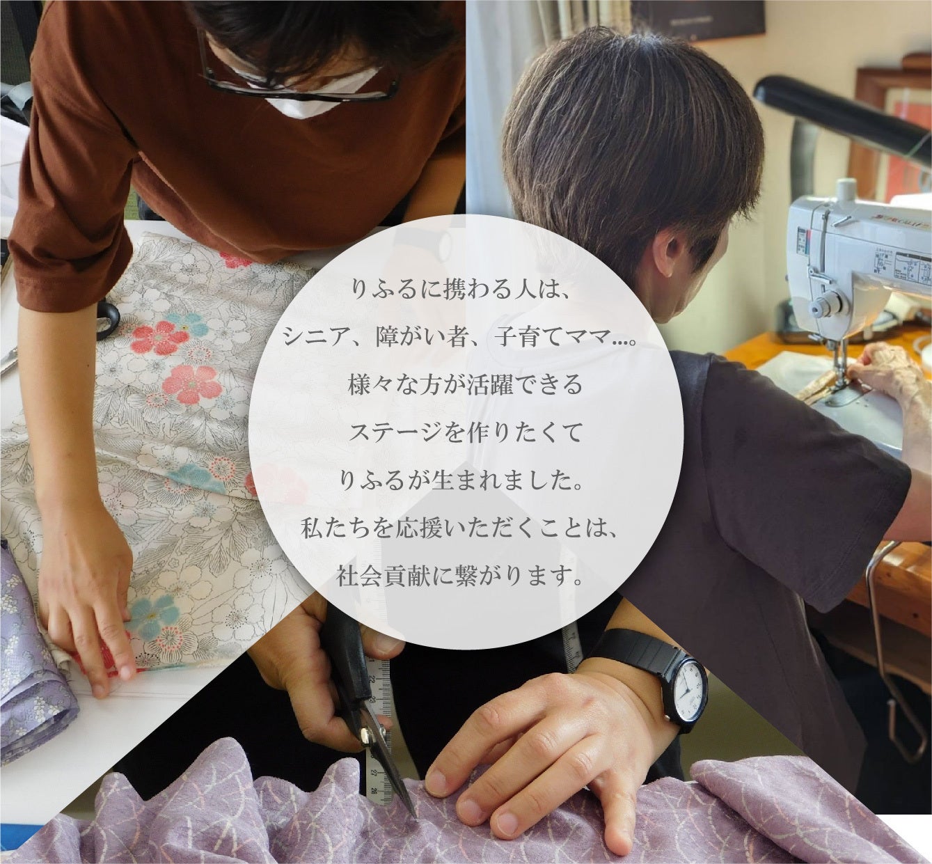 着物を手放した人も、新たな着物作品を手にした人も、みんなが明るく前向きな気持ちになれるように社会貢献したいと思いりふるが誕生しました。