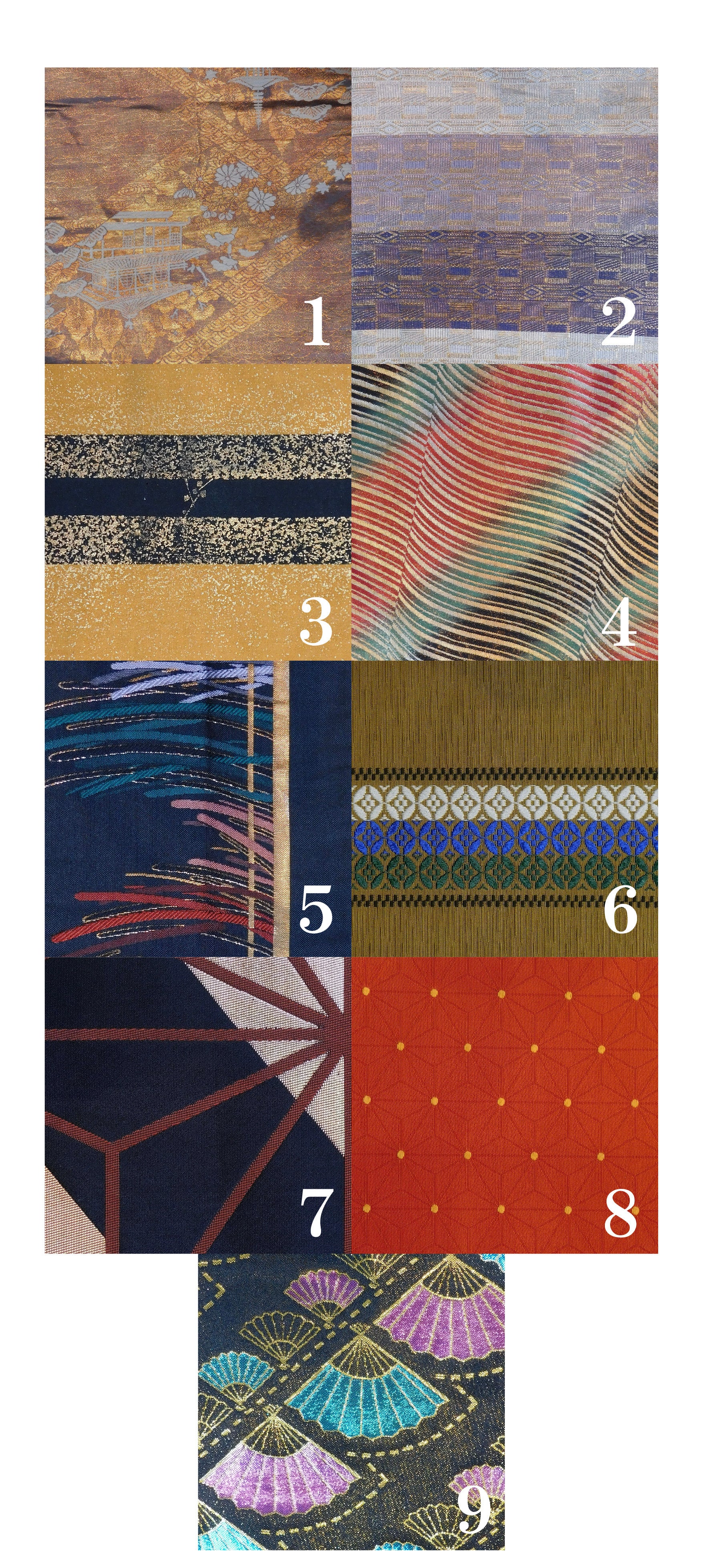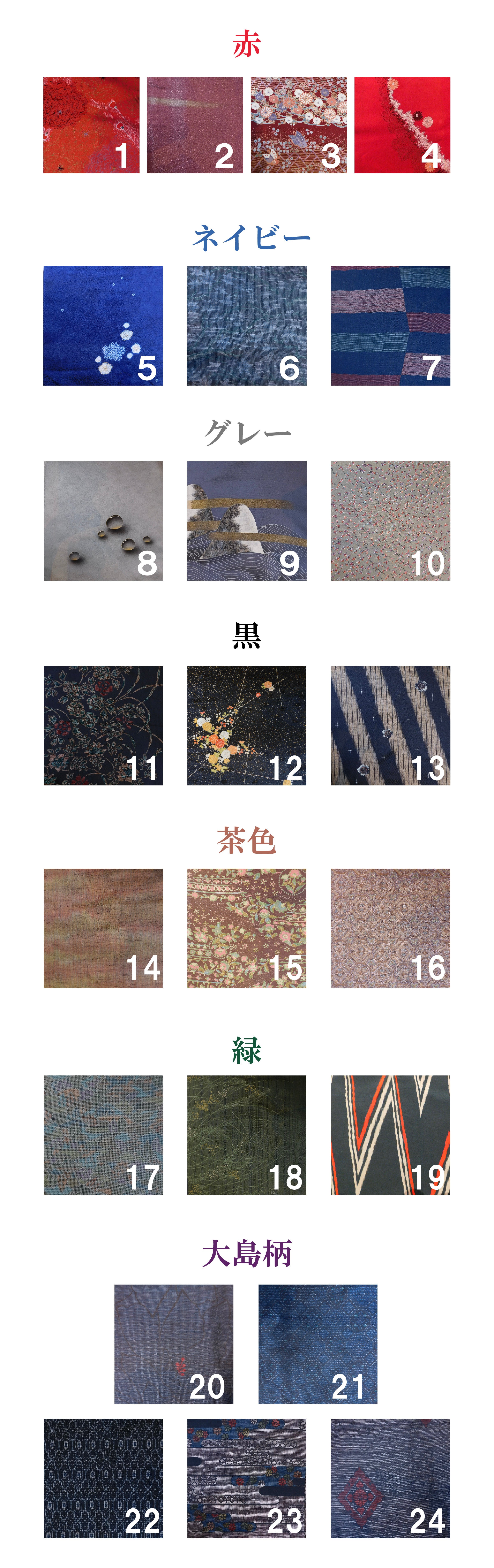 同じ着物から制作しますが、切り取る場所によって見え方が違うことをご了承ください。