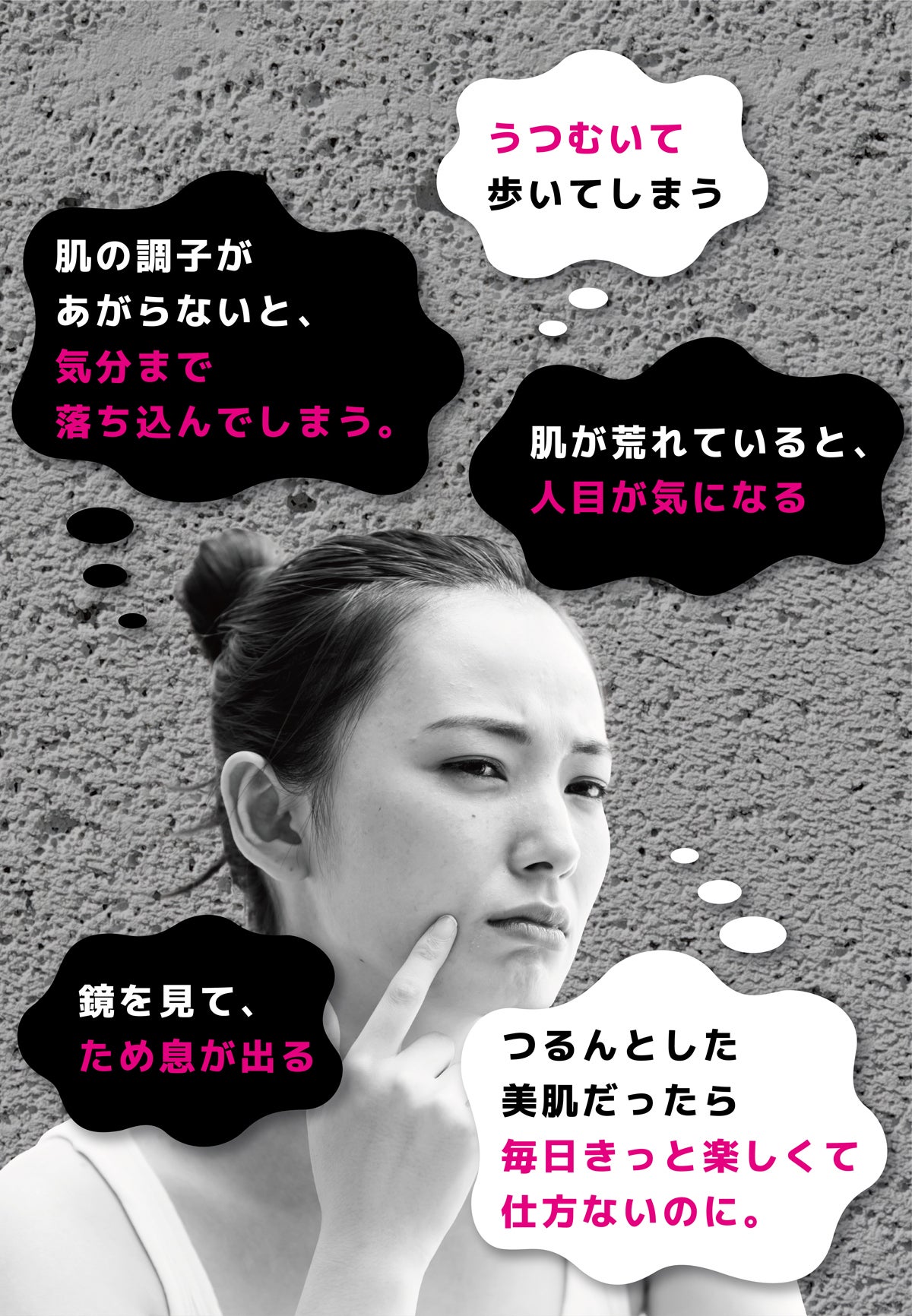 多くの女性が持つ肌のトラブルを解決に導くこの商品が生まれたストーリーや、商品に込めた熱意をお伝えします。