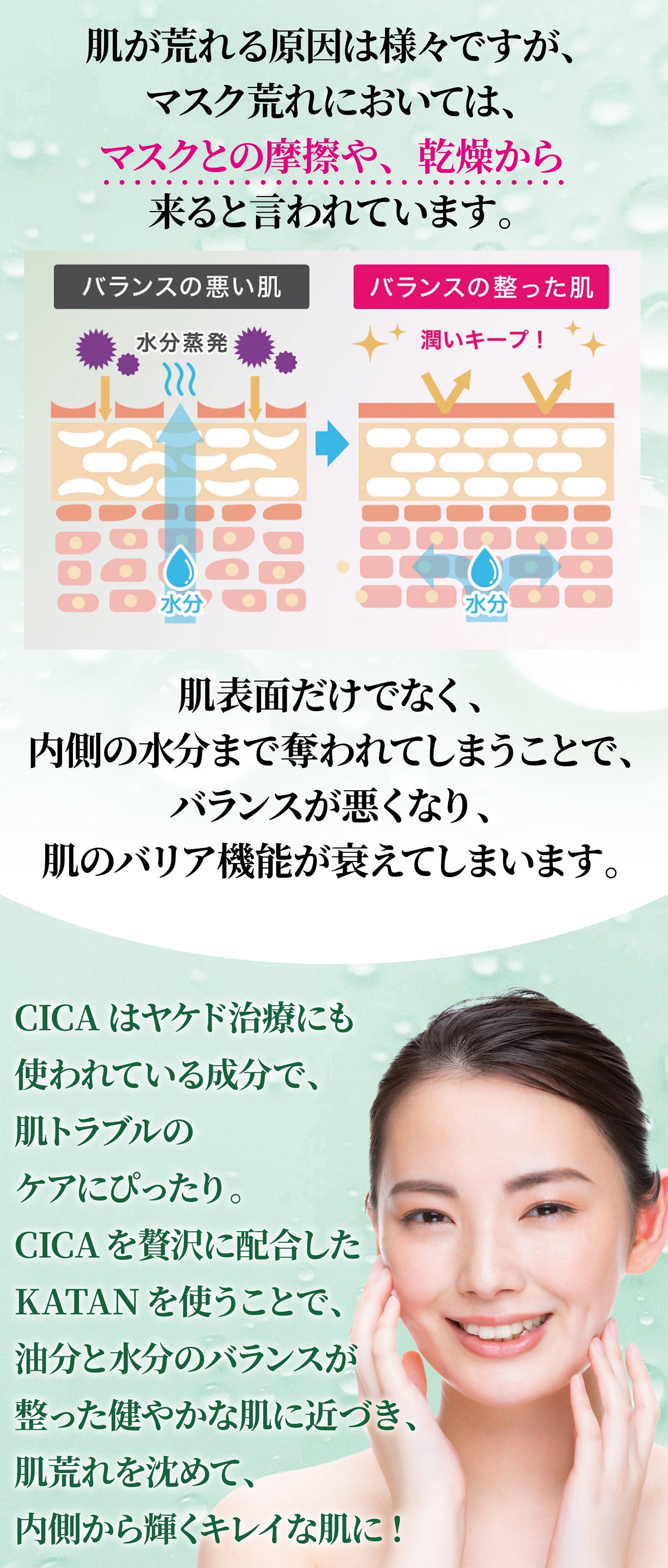 そして、同じ思いを持つスタッフと出会い、優れた美肌成分を見つけ出したことで、開発されたのが「KATAN」です。