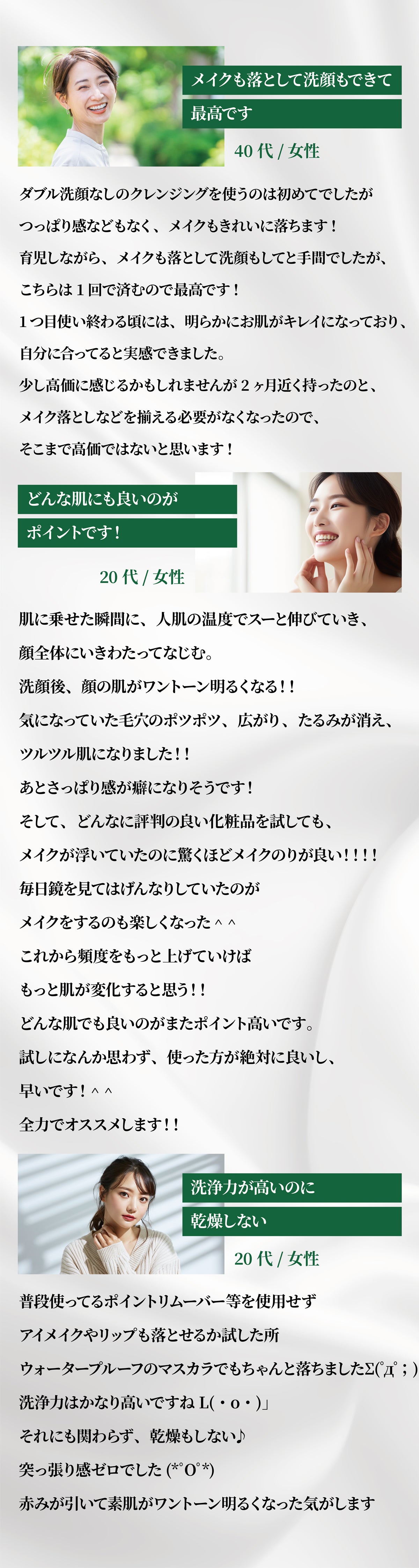 しっかりメイク落ちと、肌をととのえる保湿力がポイント