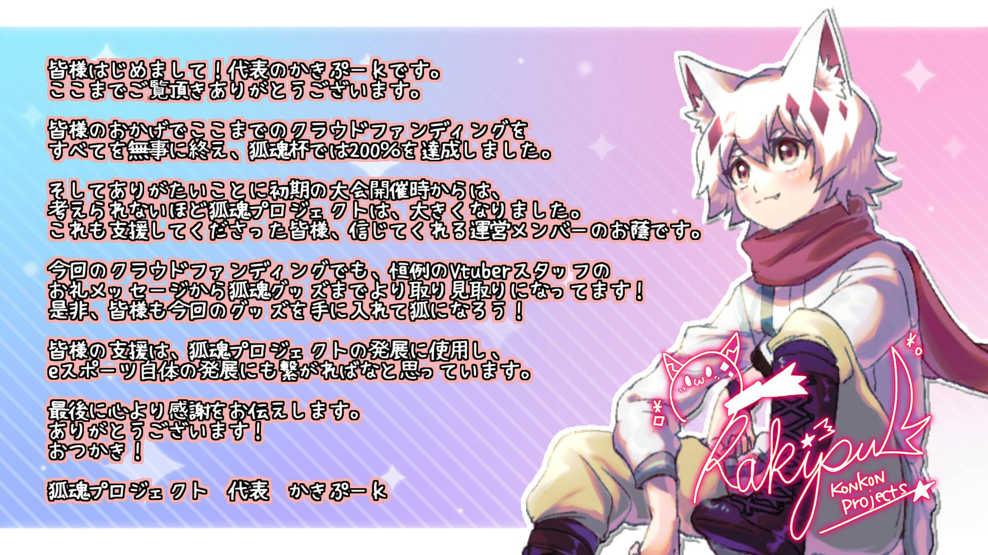 2023/10/15 13:33皆様こんにちは!狐魂Projectsです!またまた戻ってきました、CAMPFIRE!クラウドファンディング!過去2回実施した大会運営費の為のこちらの支援ですが、どちらも堂々の100%を達成しました!一重に沢山の支援者様が、見守ってくださっている証拠だなと感じました…!!そんな益々責任感と結束力が高まった狐魂Projectsですが、今回も大人気ゲーム「Dead by Daylight」のオンライン大会を実施しちゃいます!その名も「第3回こぎつね杯ver.Dead by Daylight」第1回こぎつね杯時のキービジュアル昨今、このゲームの非公式大会は各所で様々なコミュニティの方々が毎週のように主催されていて、タイトルを制覇すべく沢山のチームの方々が日々練習に勤しんでいます!この記事を書いている中の人も過去には同じく選手として涙無しでは語れない程のプレッシャーと熱い思いの中でチームメイトたちと血のにじむ努力をしてきました。なので、選手の皆様がどれほどの思いでエントリーしてくださっているのか分かるし、計り知れないほどの思い入れがあるかもヒシヒシと伝わってきます…!!「生半可な気持ちで大会を開けないぞ…!」そんな選手の皆様をお迎えする準備を、我々運営も現在着実に行っております。いい意味で頑固な運営たちなので、そのこだわりは、中の人も目を見張るものがあります…何せ代表自体が、「eスポーツ化するのは難しい」と言われているこのゲームタイトルで「eスポーツの楽しさを伝える」と意気込んでましたからね…!そうなんです、元々eスポーツ向けに作られているゲームではないので、日本のプロチームも現在のところは耳にしないのが現状です。それほど大会形式にルール設定をすることが難しいのだと思われます!制作会社様も過去に「プレイヤーに沢山の選択肢を与えたい」と言っていた通り、勝ち負けの概念がそもそも公式で決まっていません。なので数ある非公式大会様方も我々も例にもれず、日々のアップデート情報から試行錯誤して「何とかゲームそのものの楽しみを損なわずに公平なジャッジが出来る環境を作るか」が課題となっているのです。何を勝利として、何を負けとするか、全部1ユーザーである我々が判断しているわけですね。ね?大変そうでしょう?というか、めちゃめちゃこのゲームが好きなんです。せっかくエントリーしてくれた全員に楽しんでもらいたいんです。もっと試合に夢中になってもらいたいのです…!!他の大会様方も、細かいこだわりの差はあれど、行きつく先は同じ気持ちのはずです!その為には寝る間も惜しんで準備しますよ!そりゃあだって、選手の皆様もプライベートの時間を削ってこの日の為にと切磋琢磨してくださってるんですよ…!感動の試合展開が待っているに違いない…!それを最前線で見ていたい…!!!新たな伝説が生まれるに違いない…!!!そこで今回大会のテーマの「新たな物語を生み出そう。」に繋がるんですね…。ほろり。https://sites.google.com/view/kogitsune3verdbd/え?こじつけっぽいですか?前置きが長い??良いではないですか、Xでは皆さんのタイムラインを占拠してしまうだろうし、きっと今このページを読んでくださっているということは少なからず我々の活動に興味を持ってくださってるってことですもんね!!今これを書いている中の人は、こんなに沢山語れる場所はないぞと嬉々としてつづっております故、またクラファン最終日・大会当日までの短い間ですが、何度か「活動記録」を投稿していきたいと思っています!なので「大会には出場できなくても、この活動記録だけは見に来てください!!」て大きな声で言ってしまいますね。代表に叱られちゃうかな。ま、いっか。なんやかんや、わーわー言うとりますが、エントリーは今日の日付が変わるまでですよー!ありがたいことに続々とお申込み頂いてます!うれしやうれし。期間中は何度でも修正できる設定にしているそうなので、皆さん記入間違いだけは気を付けて!!当日の配信にそのままのお名前で載っちゃいますよ!!それではまた~!☆Good Luck, Have Fun! もっと見る