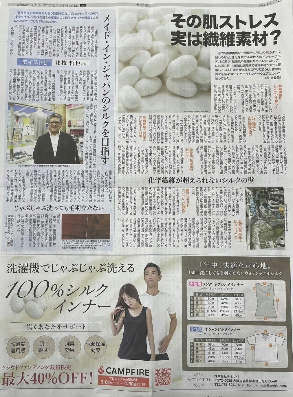 大阪日日新聞社様にて取材をいただきました!