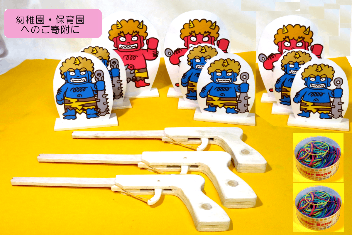 基本セット(ゴム鉄砲3丁+青鬼赤鬼9体+カラー輪ゴム2缶)