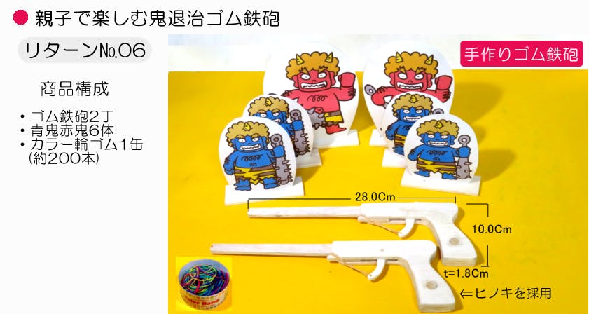 №07 リターン価格 1セット 7,200円(税込・送料込み)[鉄砲3丁+青鬼赤鬼9体+カラー輪ゴム2缶]