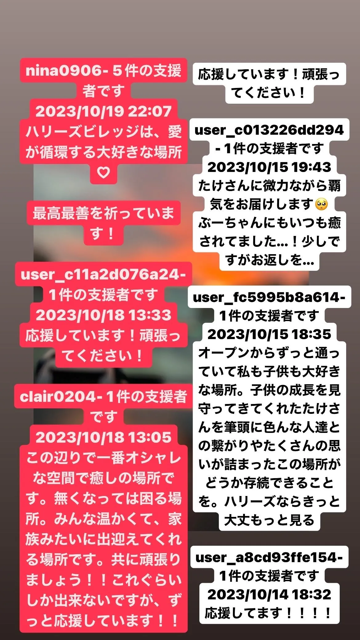 一枚しか画像が貼れず、全てを載せきれませんが、ご支援いただき皆様本当にありがとうございます。