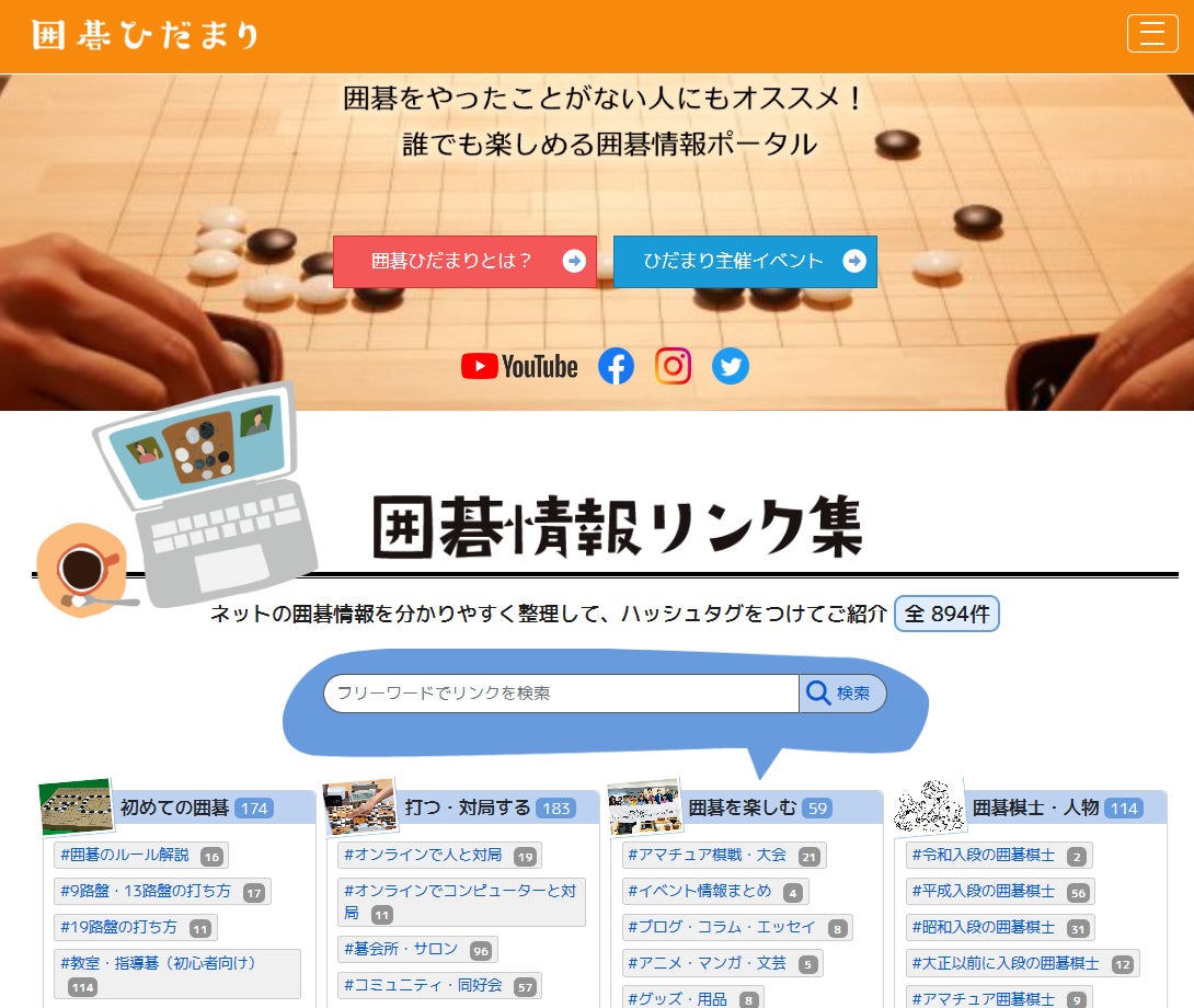 ネット上にある膨大な囲碁情報を、わかりやすく整理しているwebサイト。