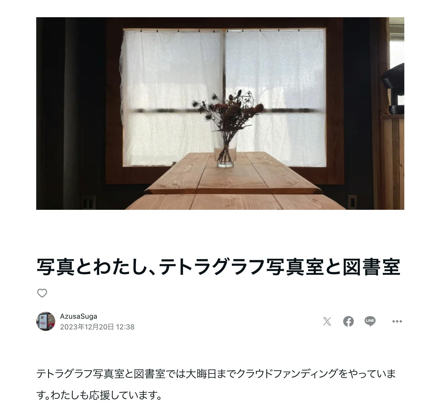 テトラグラフ写真室と図書室では大晦日までクラウドファンディングをやっています。わたしも応援しています。