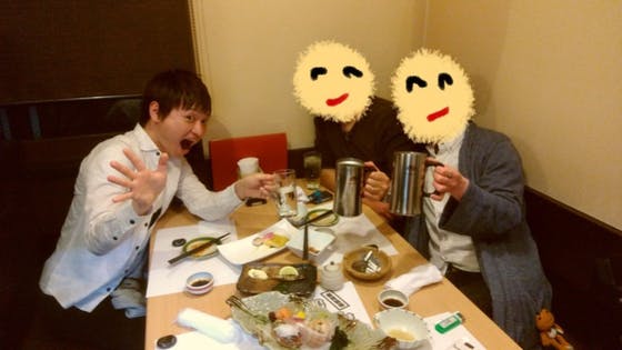 おはようございます!カツラ愛好家 トニー役の大和です^ ^ (画像はGWの飲み会です。先輩2人の顔出し許可を取ってなかったので顔を書いたらシュールになりましたw もちろんカツラです笑)