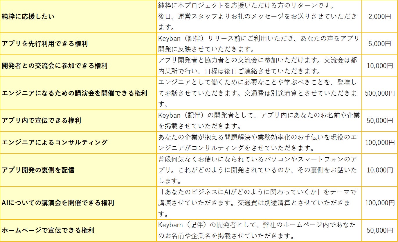 Keybarn(記伴)の開発者として、アプリ内にあなたのお名前や企業名を掲載させていただきます。