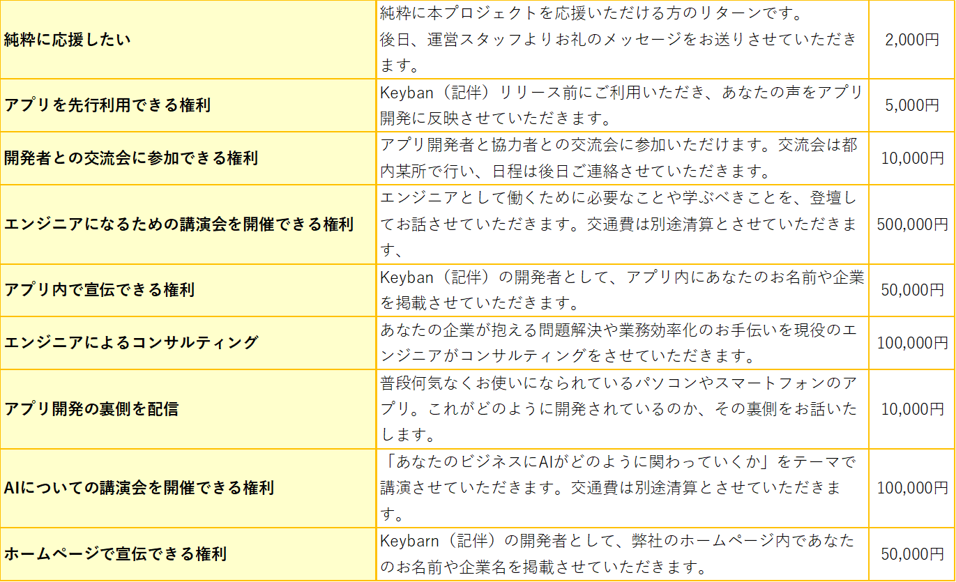 Keybarn(記伴)の開発者として、弊社のホームページ内であなたのお名前や企業名を掲載させていただきます。