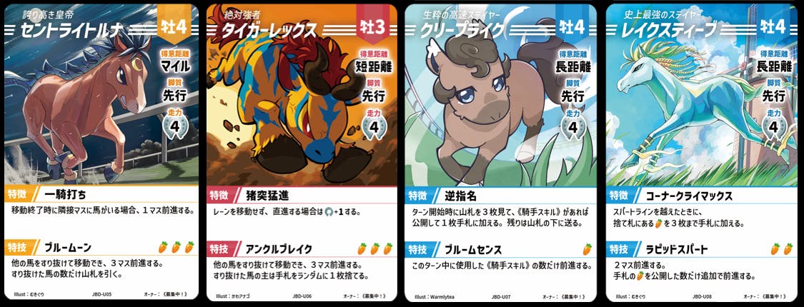 牛のようなツノが生えており、他の馬にぶつかる戦い方をする。