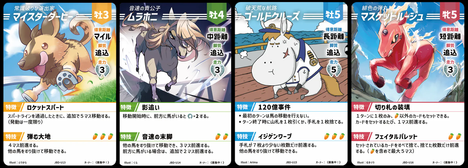 基本走力は低く後方からのレース展開を強いられますが、他の馬を置き去りにするほどの加速力を秘めています。