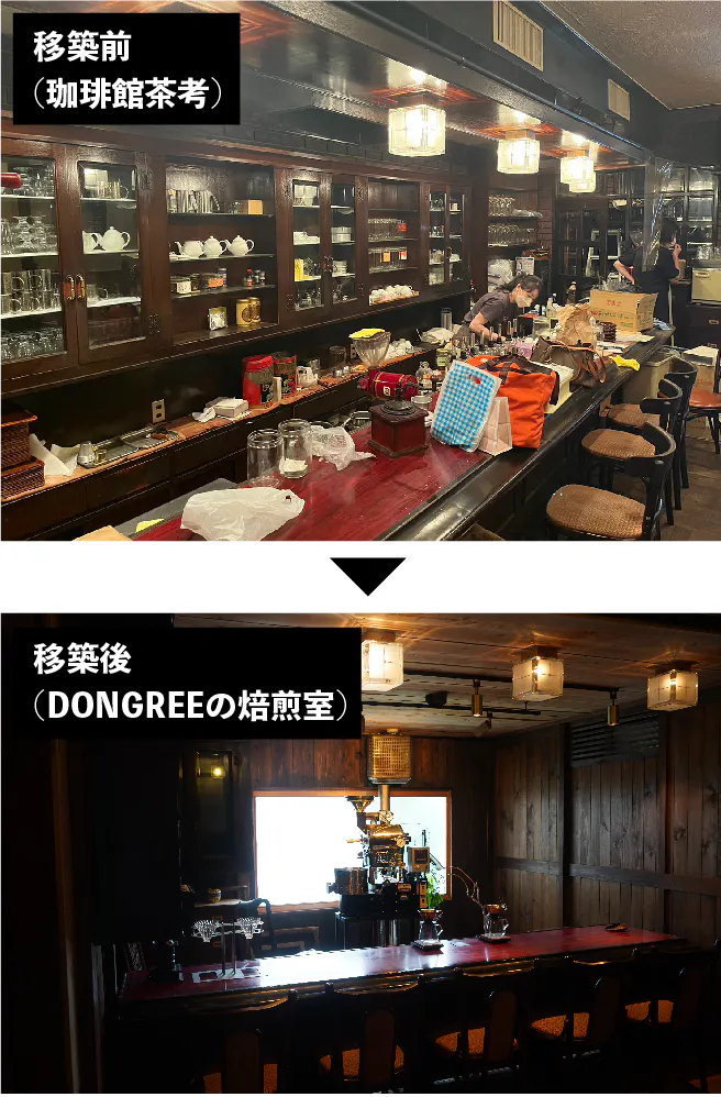 中でもDONGREEは、一番大きな『カウンターテーブル』と什器を譲り受け、これから『喫茶焙煎室』という名の空間で新たにお客様を迎えることになります。