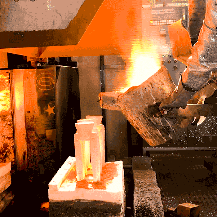 鋳造とは、高温で加熱して溶かした金属を型に流し込んで作る金属加工技術です。溶かした金属を流し込む鋳造では、鍛造に比べ造形の自由度が大幅に向上します。