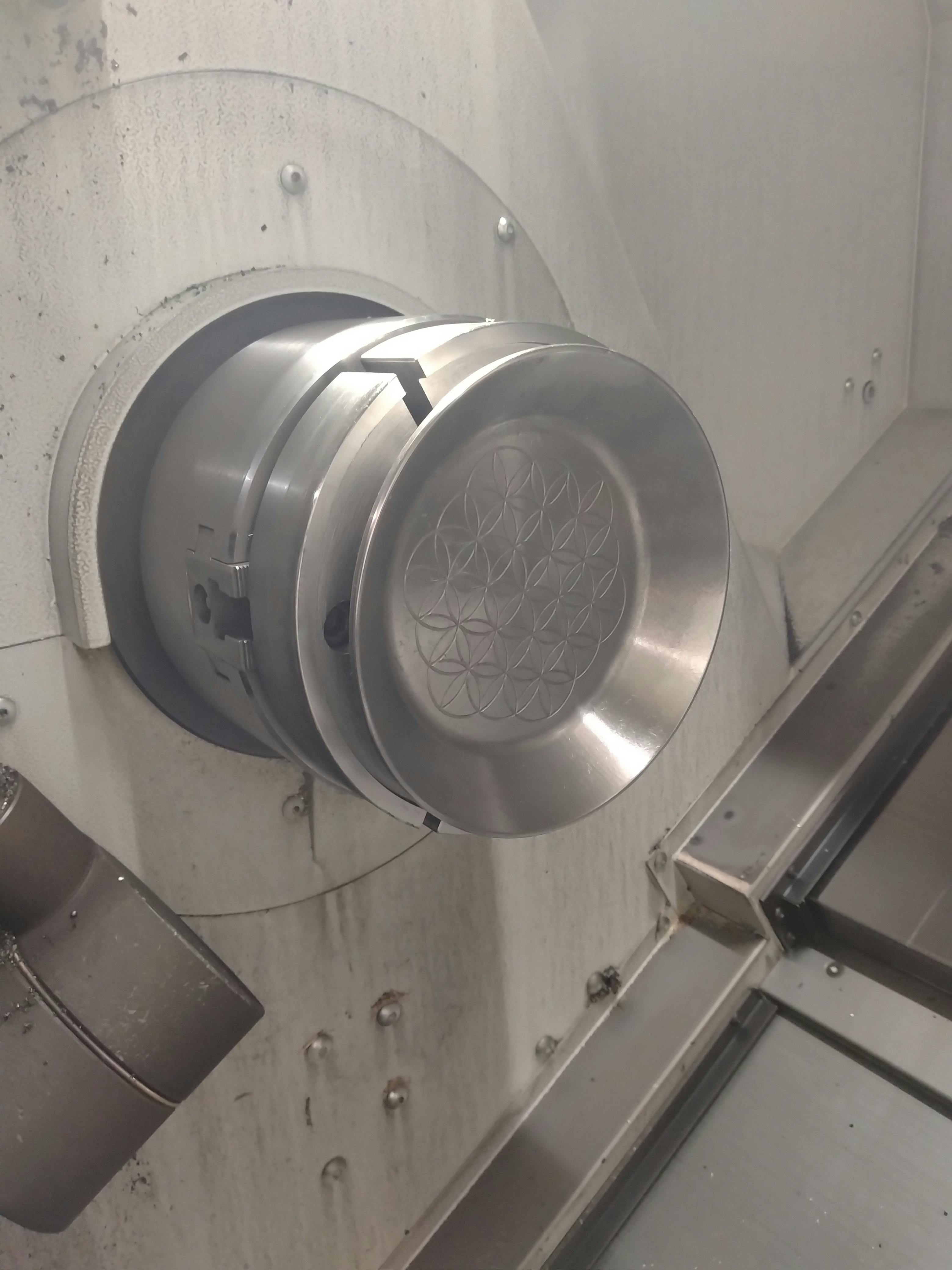 先日お見せした鋳造品の高台部分を使用して機械に咥えさせます(チャックと言います)
