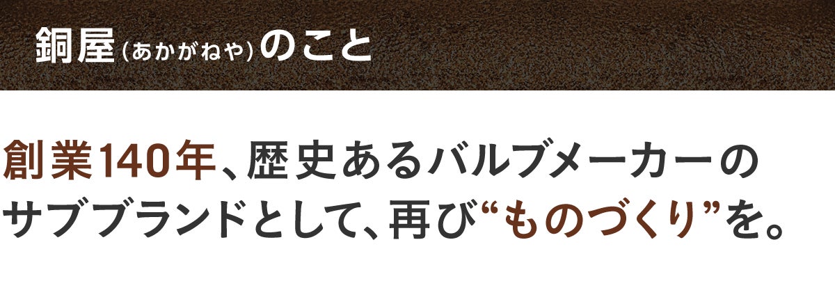 このように操業140周年を迎える当社が長年培ってきた技術を応用し、世の中にないもの、お客様に喜んで頂けるもの、自分たちが作りたかったものを提供していくブランドとして創業当時の“銅屋”を再び立ち上げました。