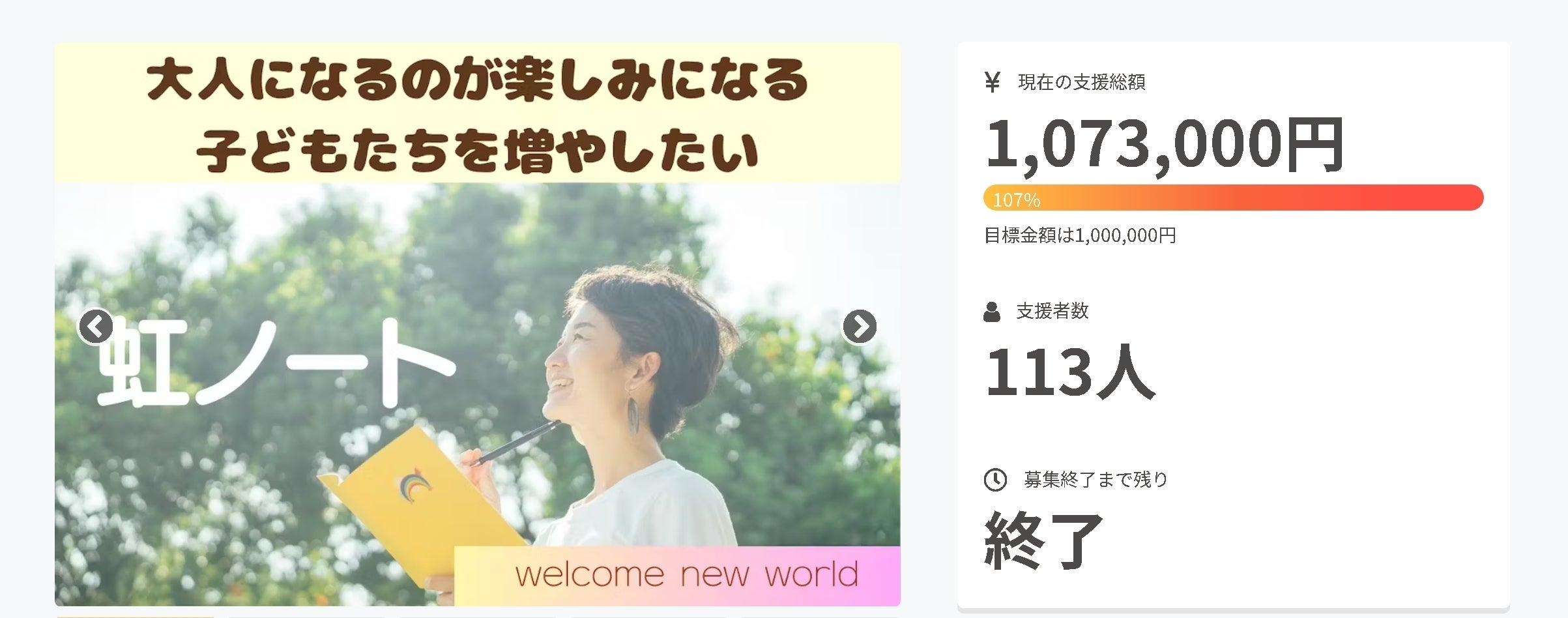 113人で無事終わることができました。多くのご支援ありがとうございました。12月より順番にリターン配送などを行いますので進捗なども随時ご報告させていただきます。