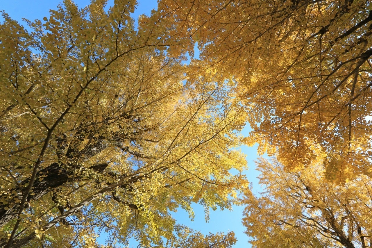 昭和2年から4年にかけて、八王子市追分町交差点から高尾駅入口まで、約5.5kmにわたる甲州街道(国道20号)の両側に、大正天皇陵造営の記念樹として約770本のいちょうの木が植樹されました。以来、季節に応じてそれぞれの風景で街を彩り、秋になると特に美しく黄葉し、道行く人の目を楽しませてくれています。